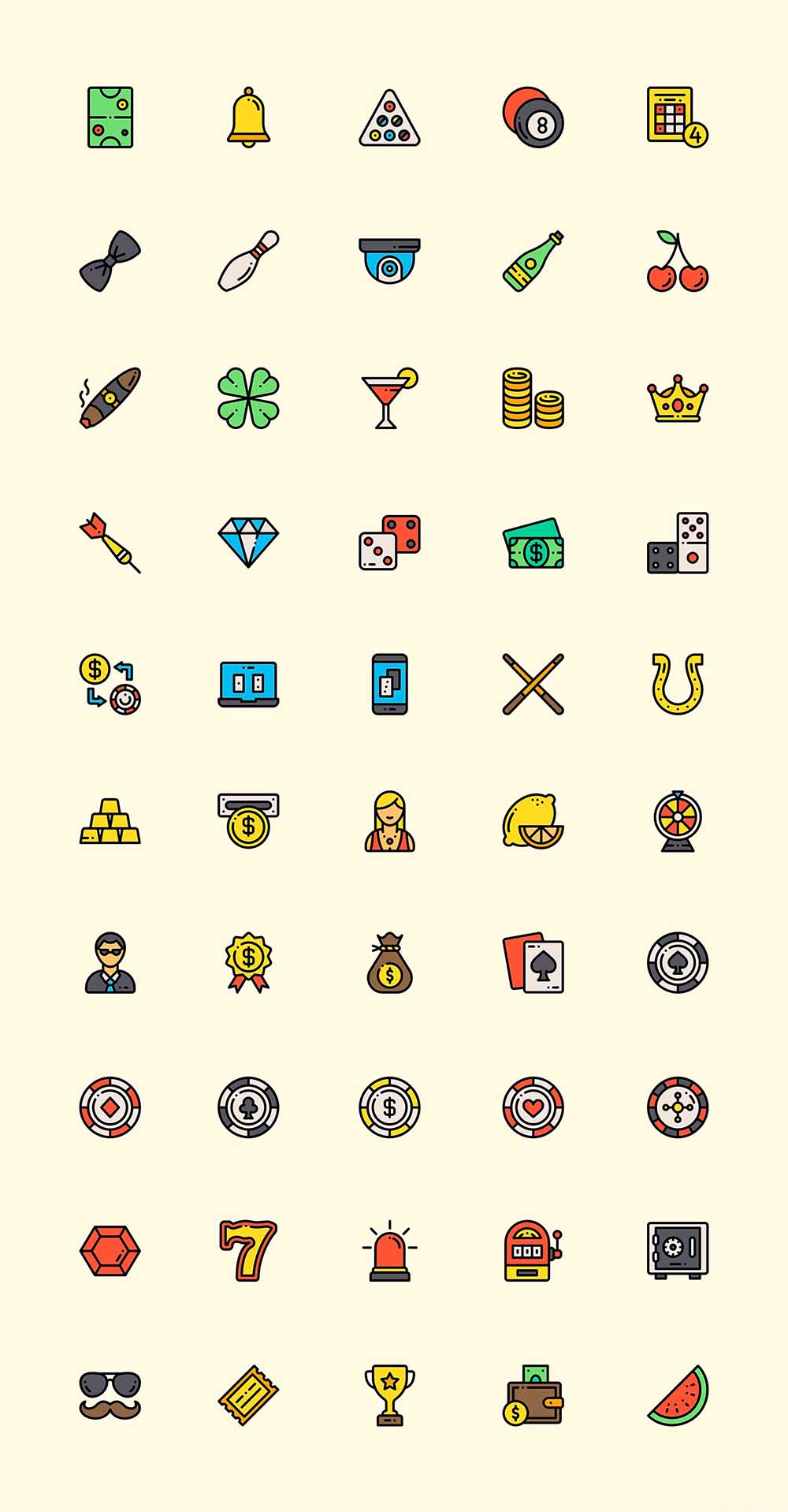 50 枚彩色棋牌游戏元素图标、彩色图标、sketch源文件下载