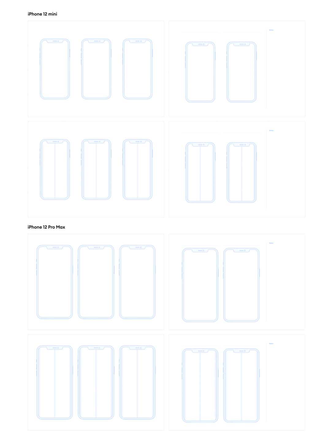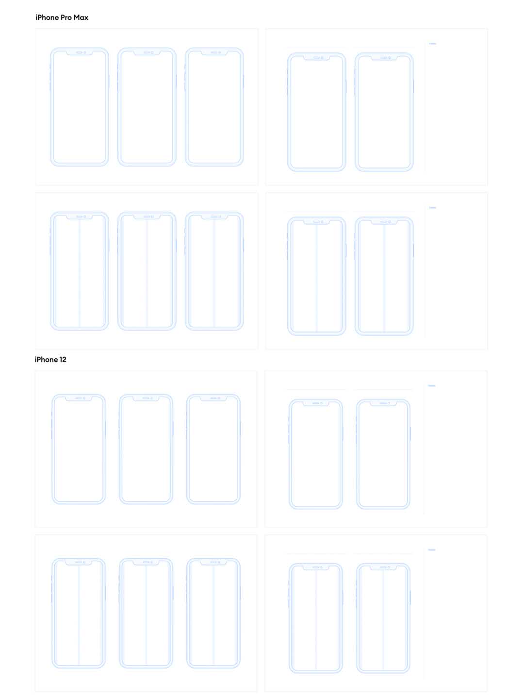 12个机型样式,适用于 iPhone 和 Android,A4 格式模板,完美展示真实设备尺寸。