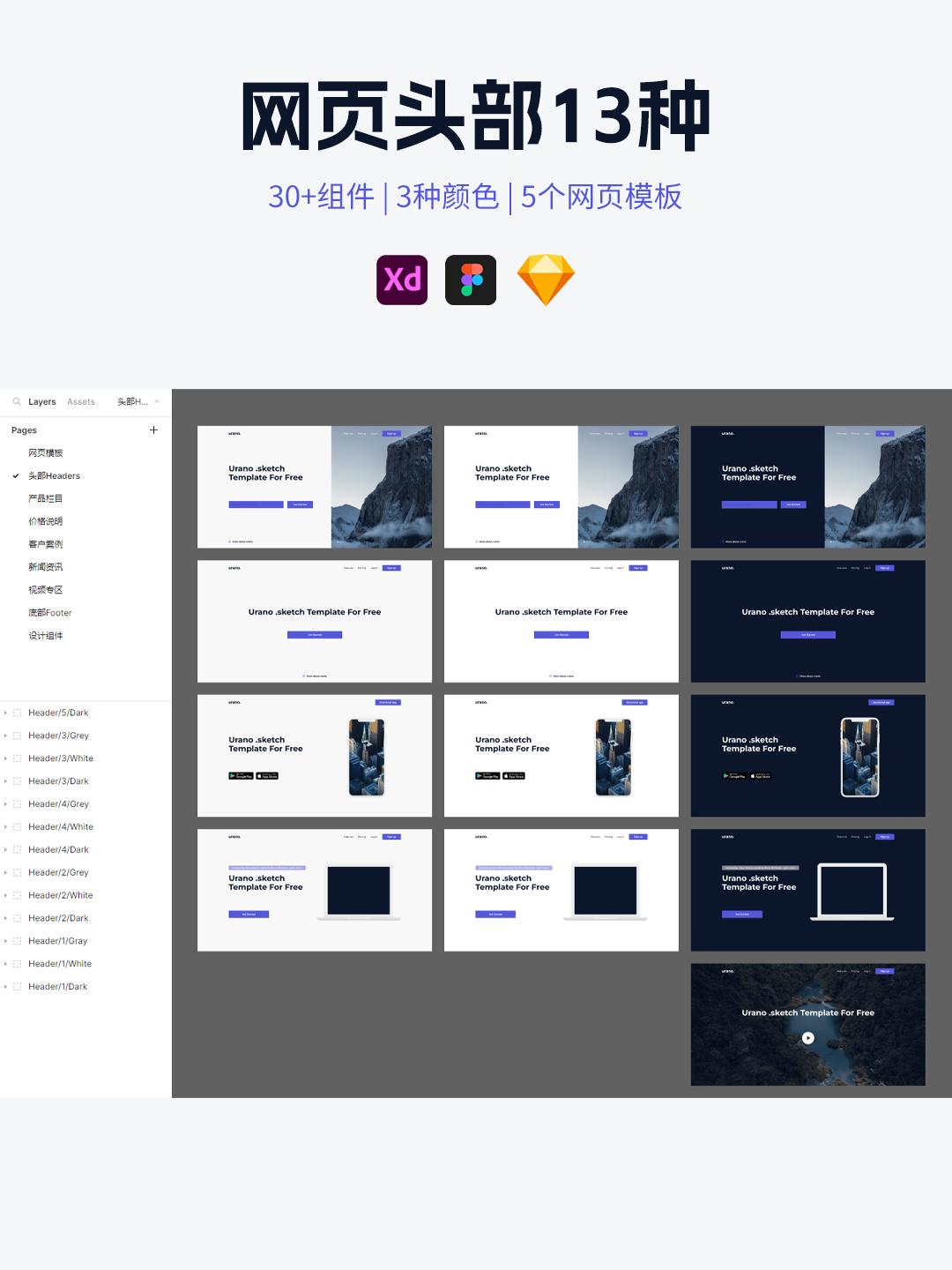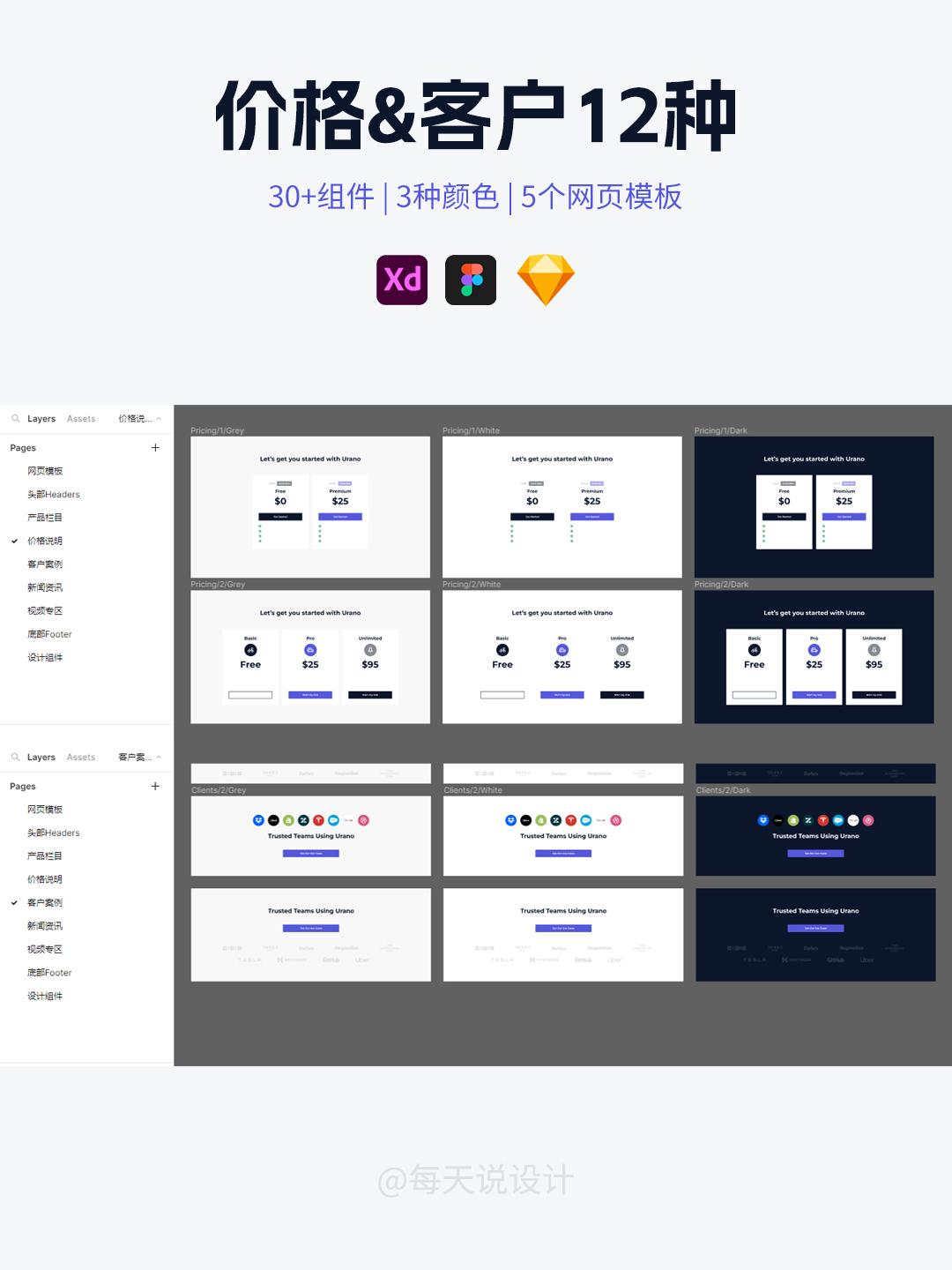 网页设计模板 | 整套网页设计sketch,xd,figma源文件