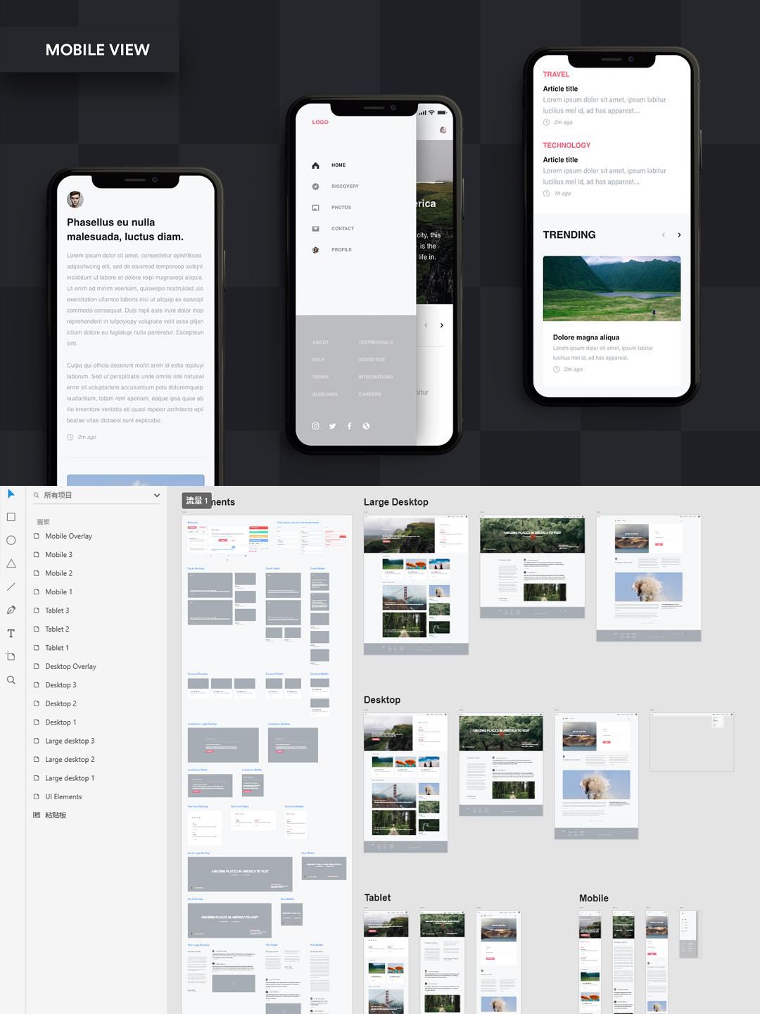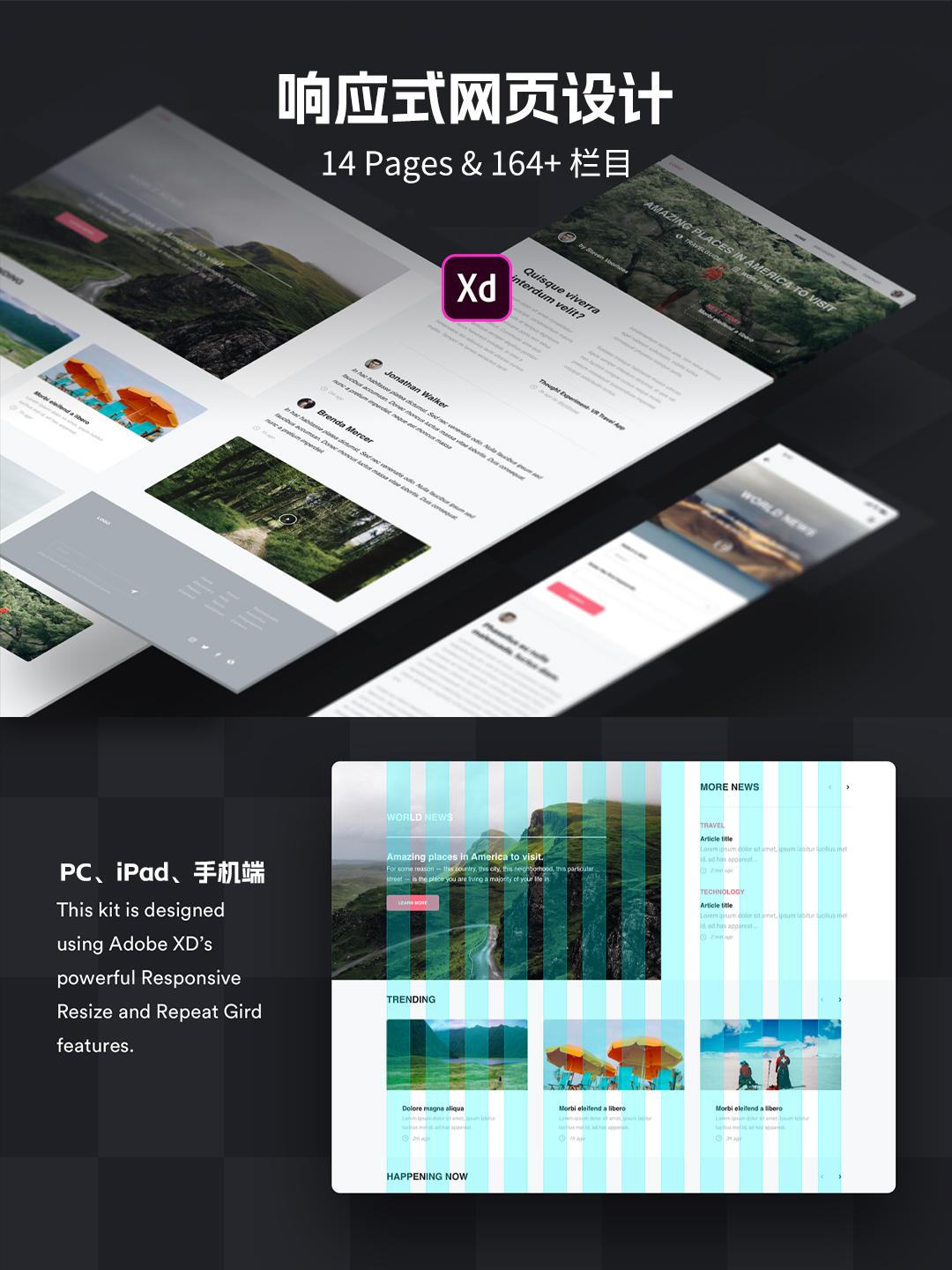 响应式网页,共14个页面,160+组件,PC、iPad、手机端响应式布局