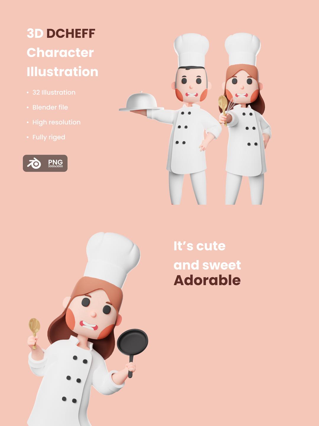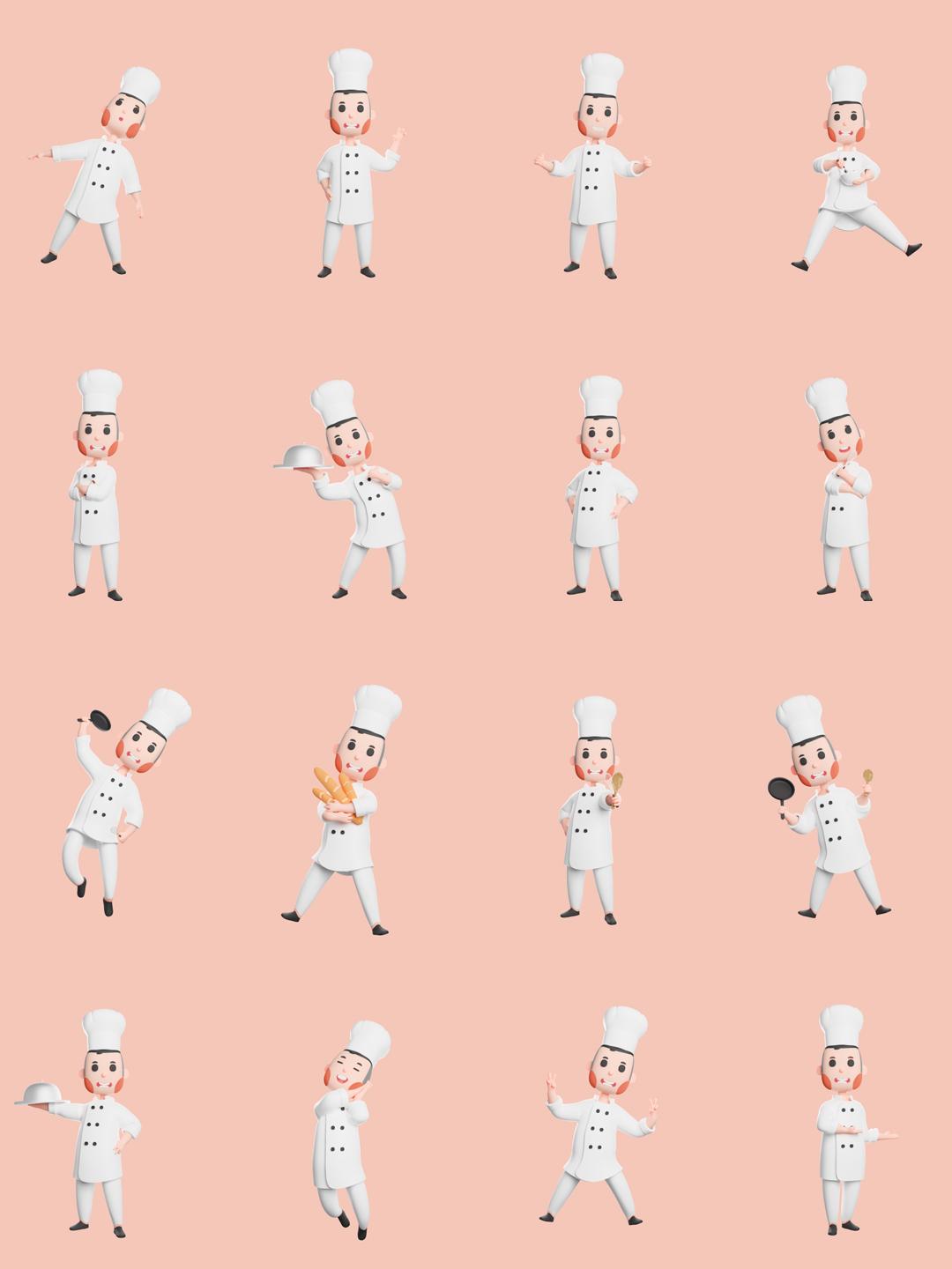 美食3D图标 | 厨师3D人物形象 | 3D免抠素材
