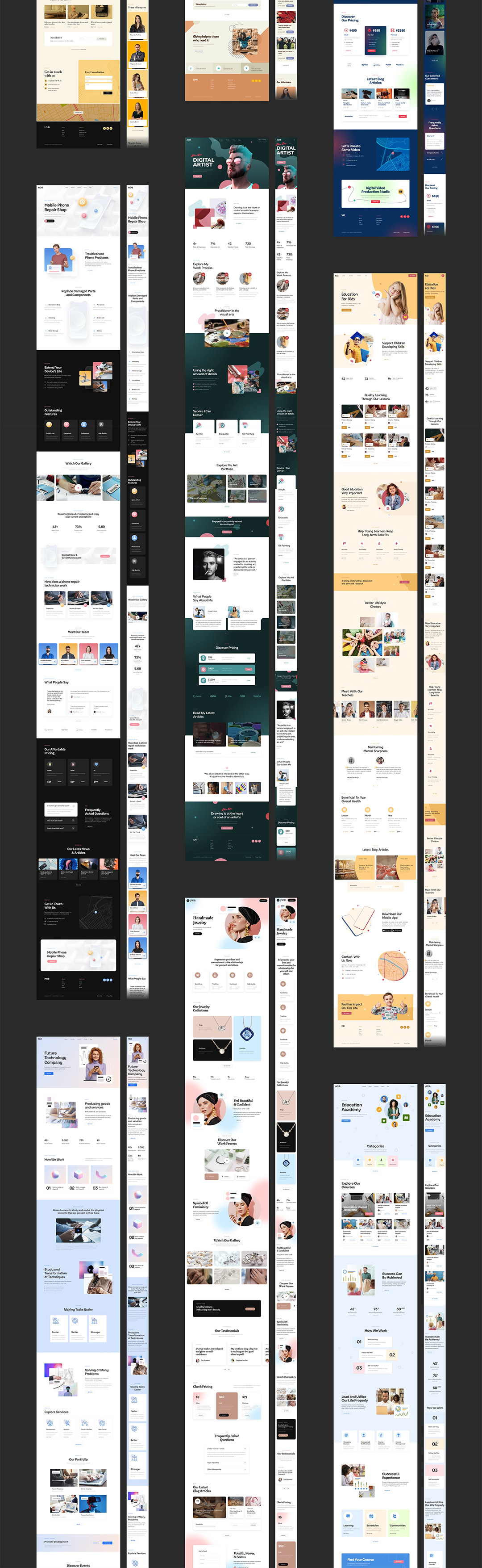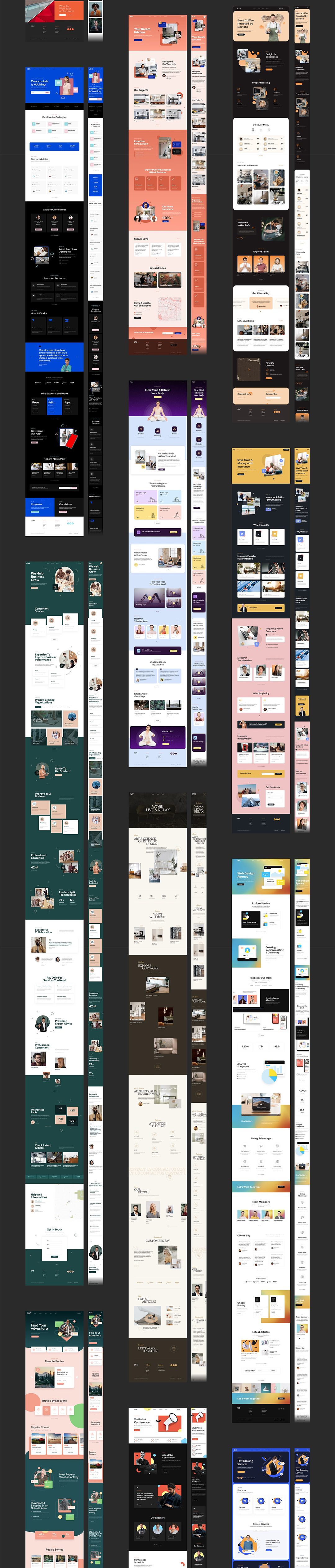 推荐:20个行业,着陆页响应式网站设计,48个原型图sketch,xd,fig源文件,包含,企业服务,SEO,面包房,建筑等行业