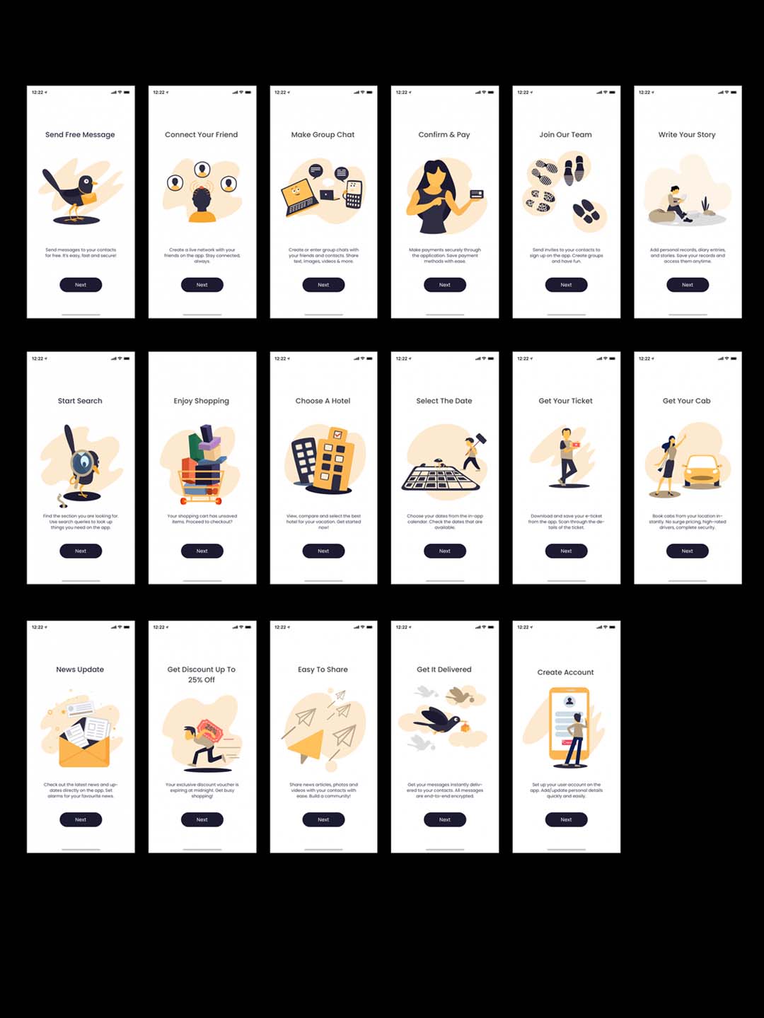 18个免费APP引导页插画UI源文件下载,APP引导页UI psd源文件下载