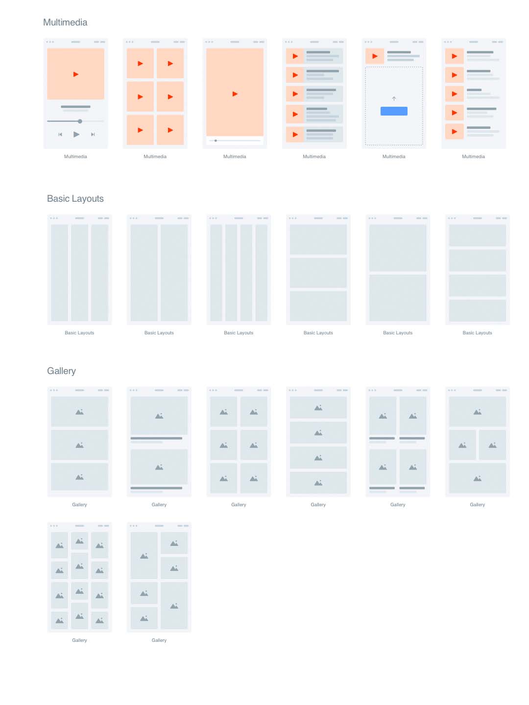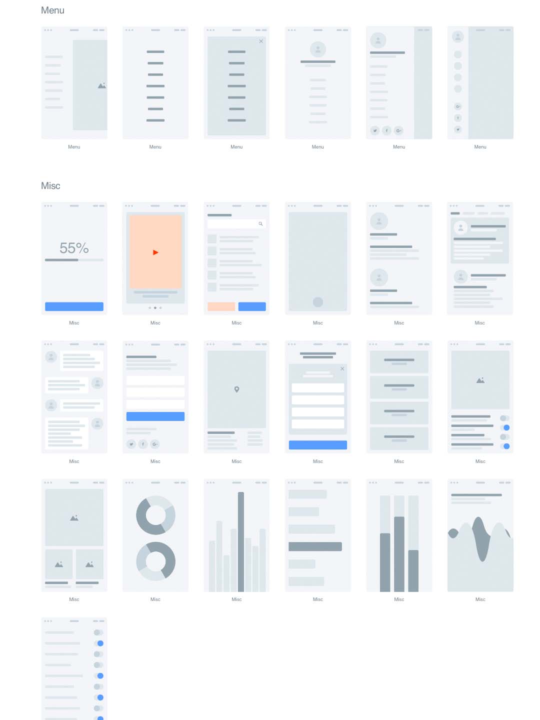 浅色灰色各68页APP移动端设计原型图,线框图figma源文件