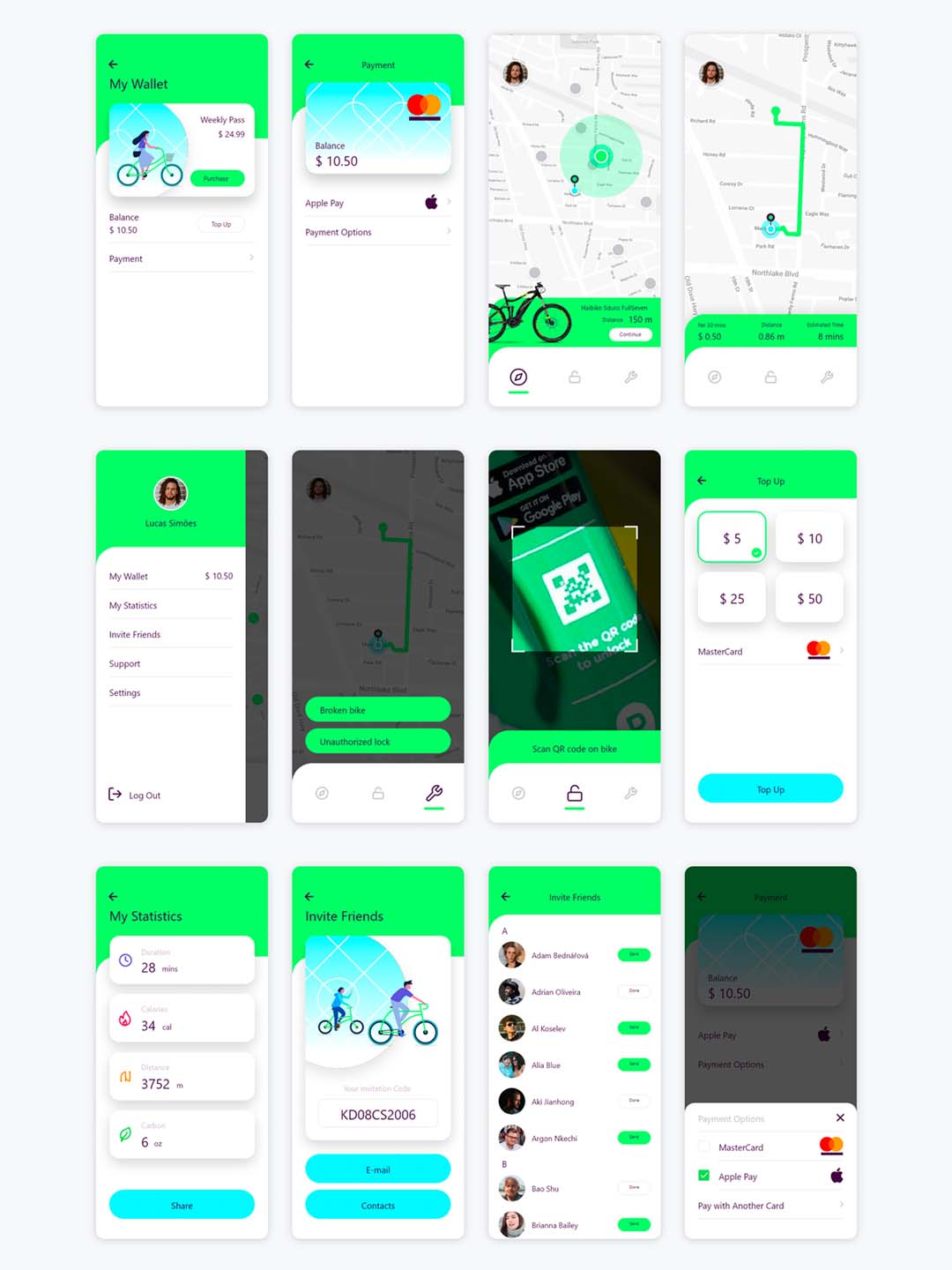 完整小清新设计的共享单车APP UI Kit,fig,sketch源文件下载