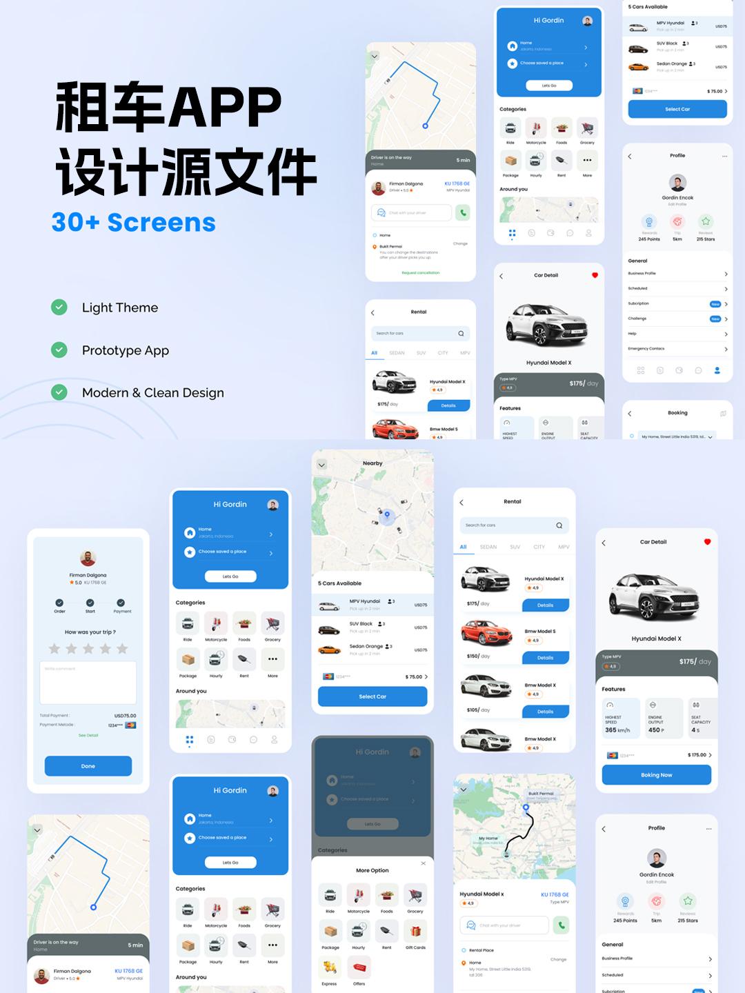 30页租车APP界面设计模板 | UI Kits设计sketch源文件
