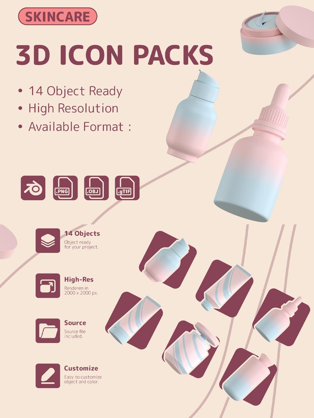 3D图标 | 化妆品包装瓶3D设计源文件 | Blender、Png