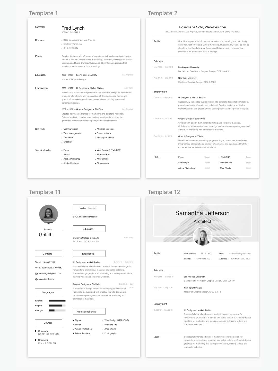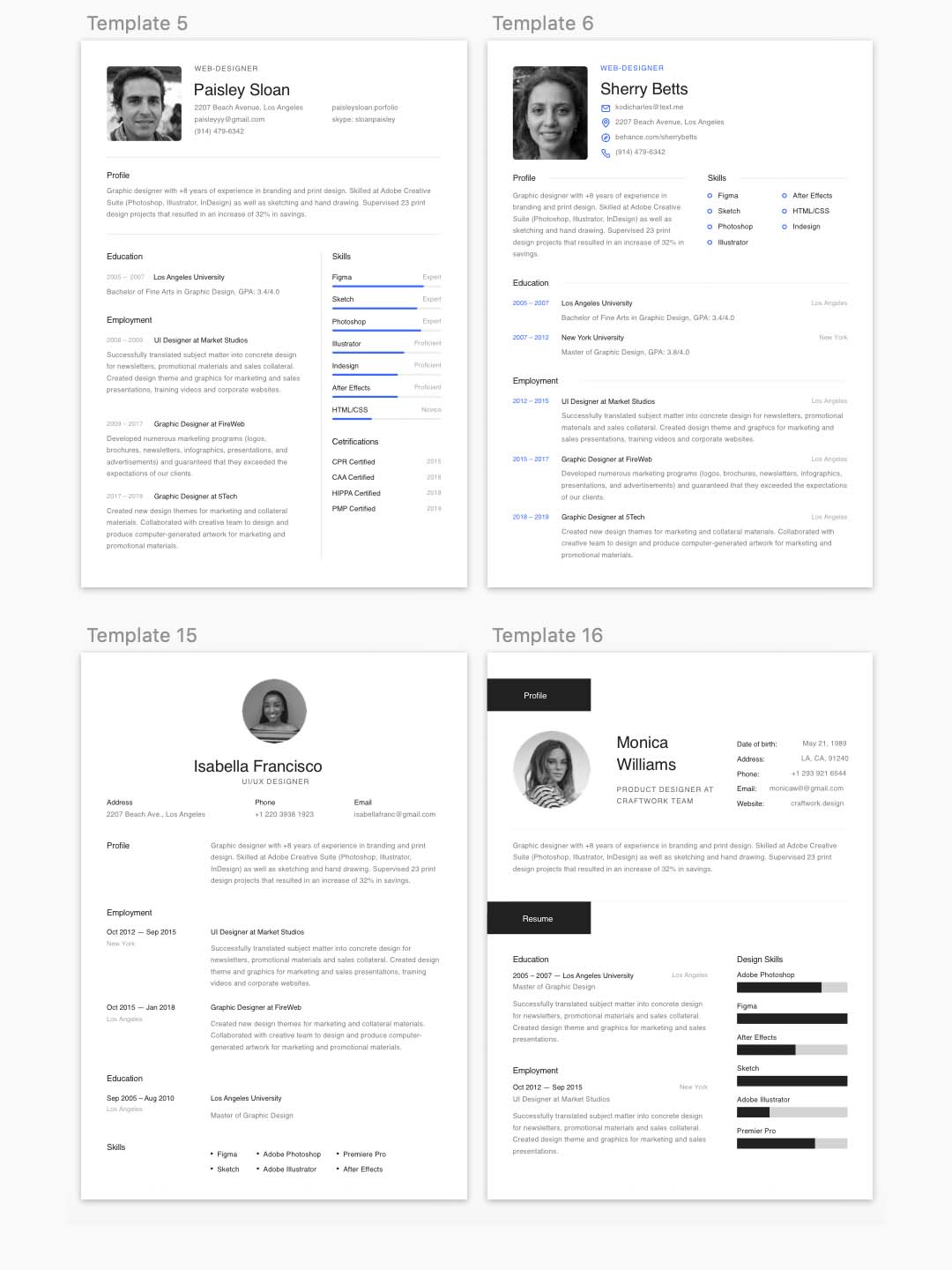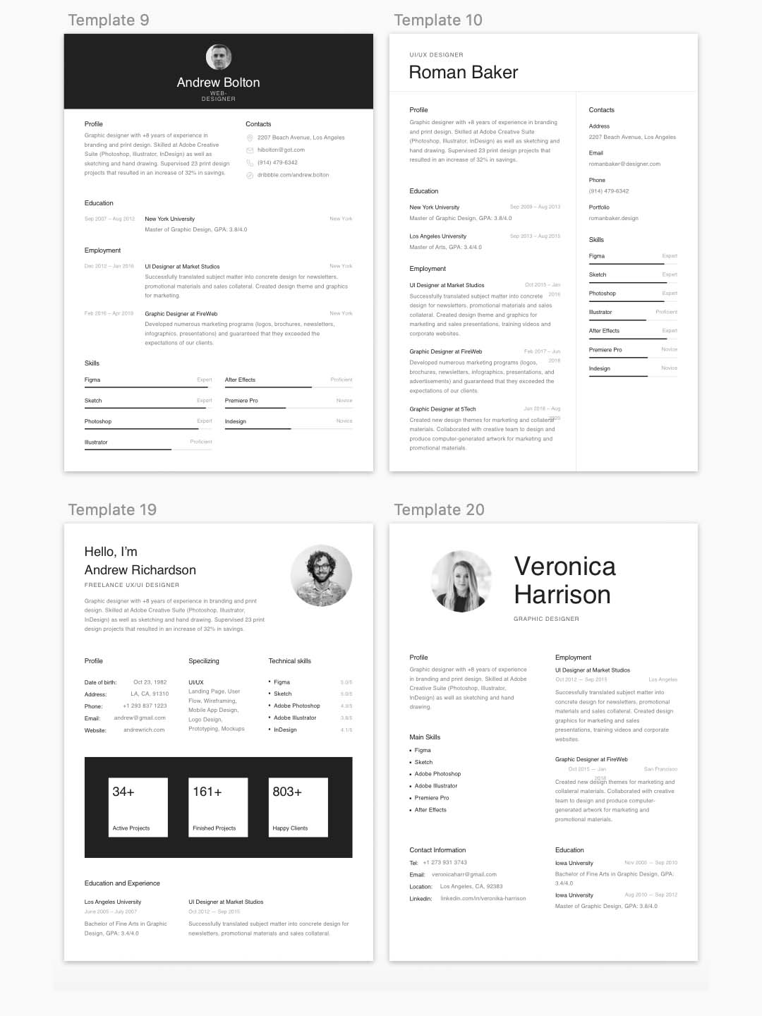 20份高大上简历排版会员版,xd,sketch,figma格式