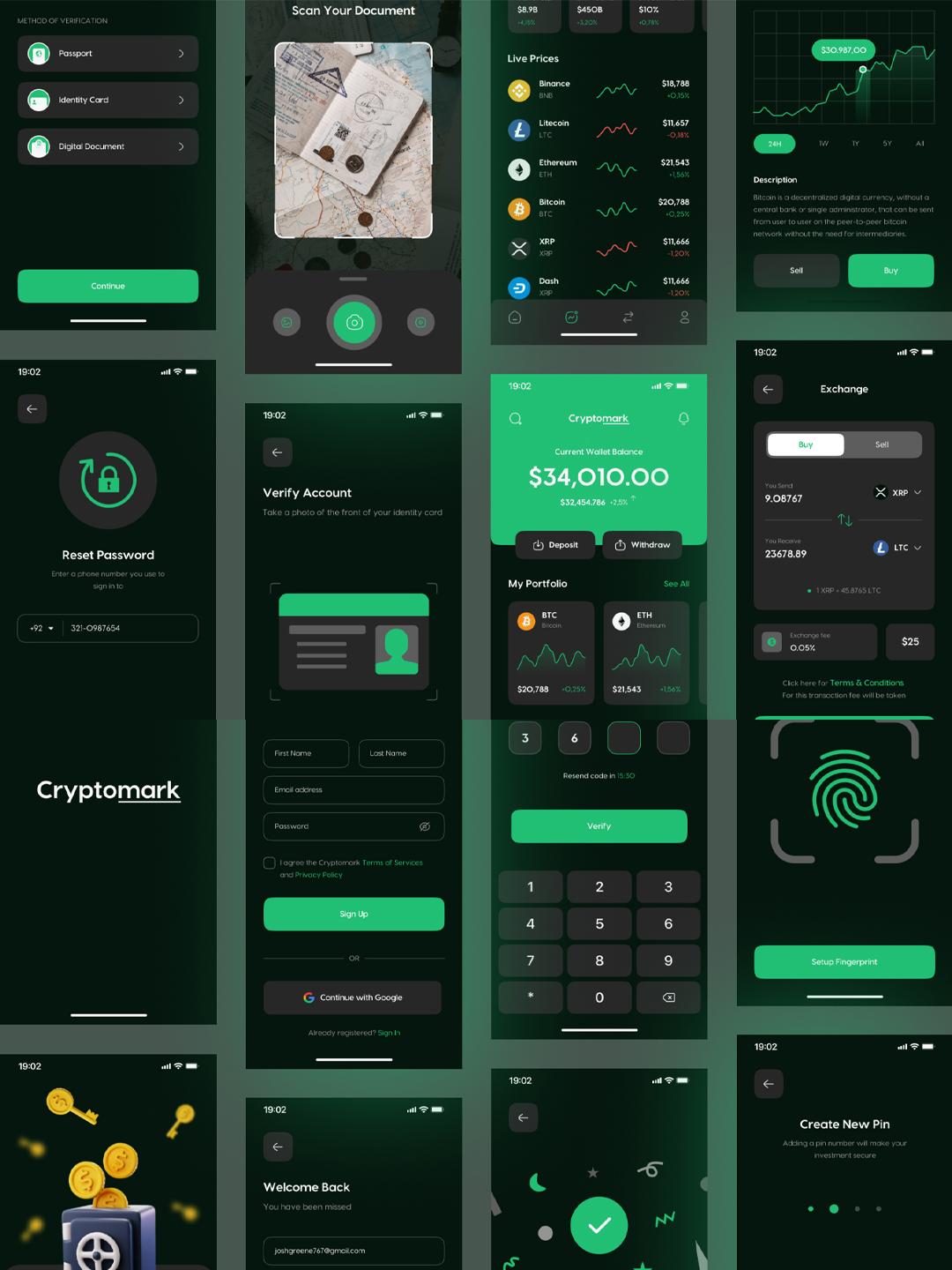 30页精美暗色风电子钱包app UI界面figma,xd源文件