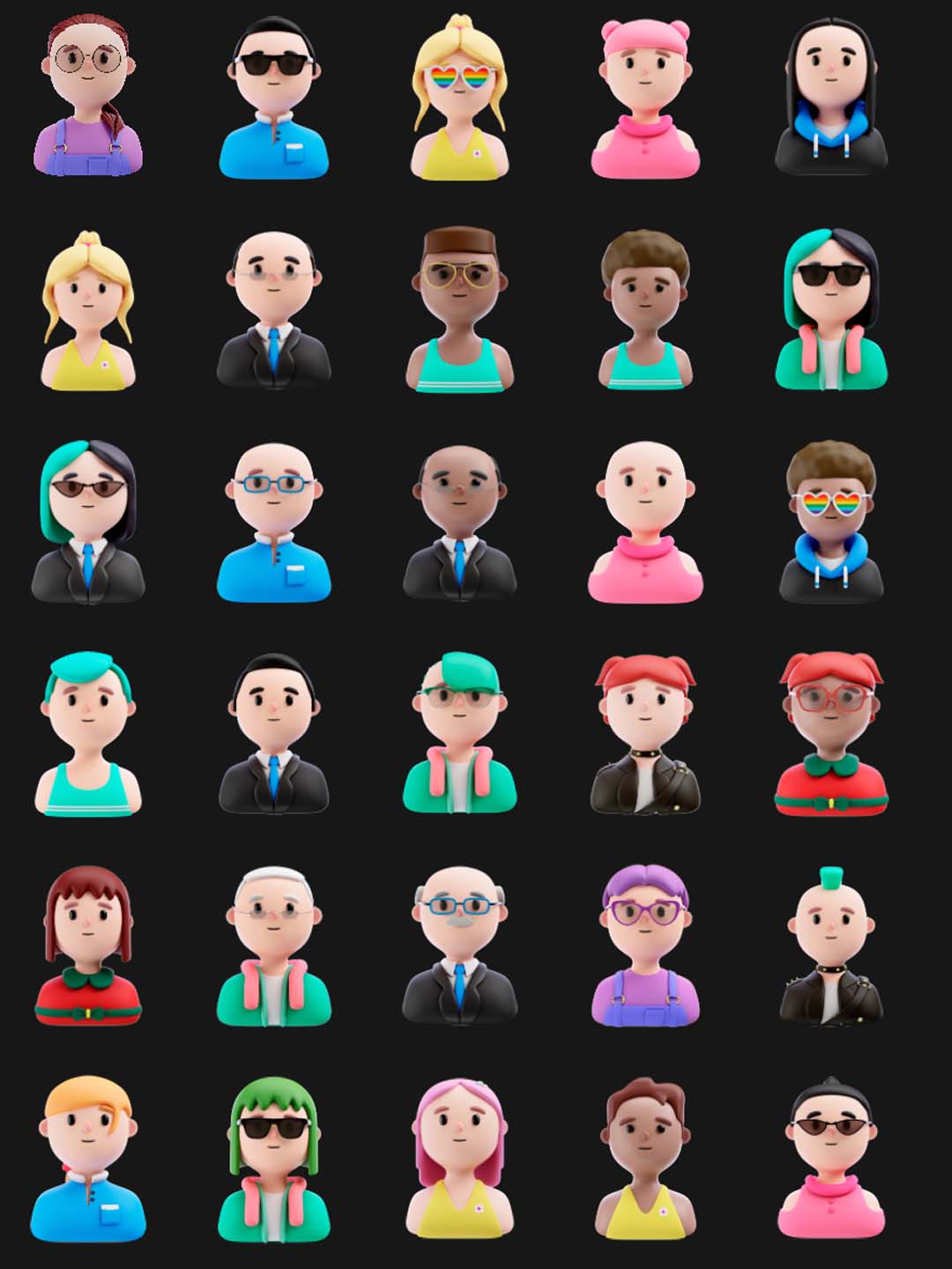 免费分享一组3D头像UI设计源文件|30个figma格式