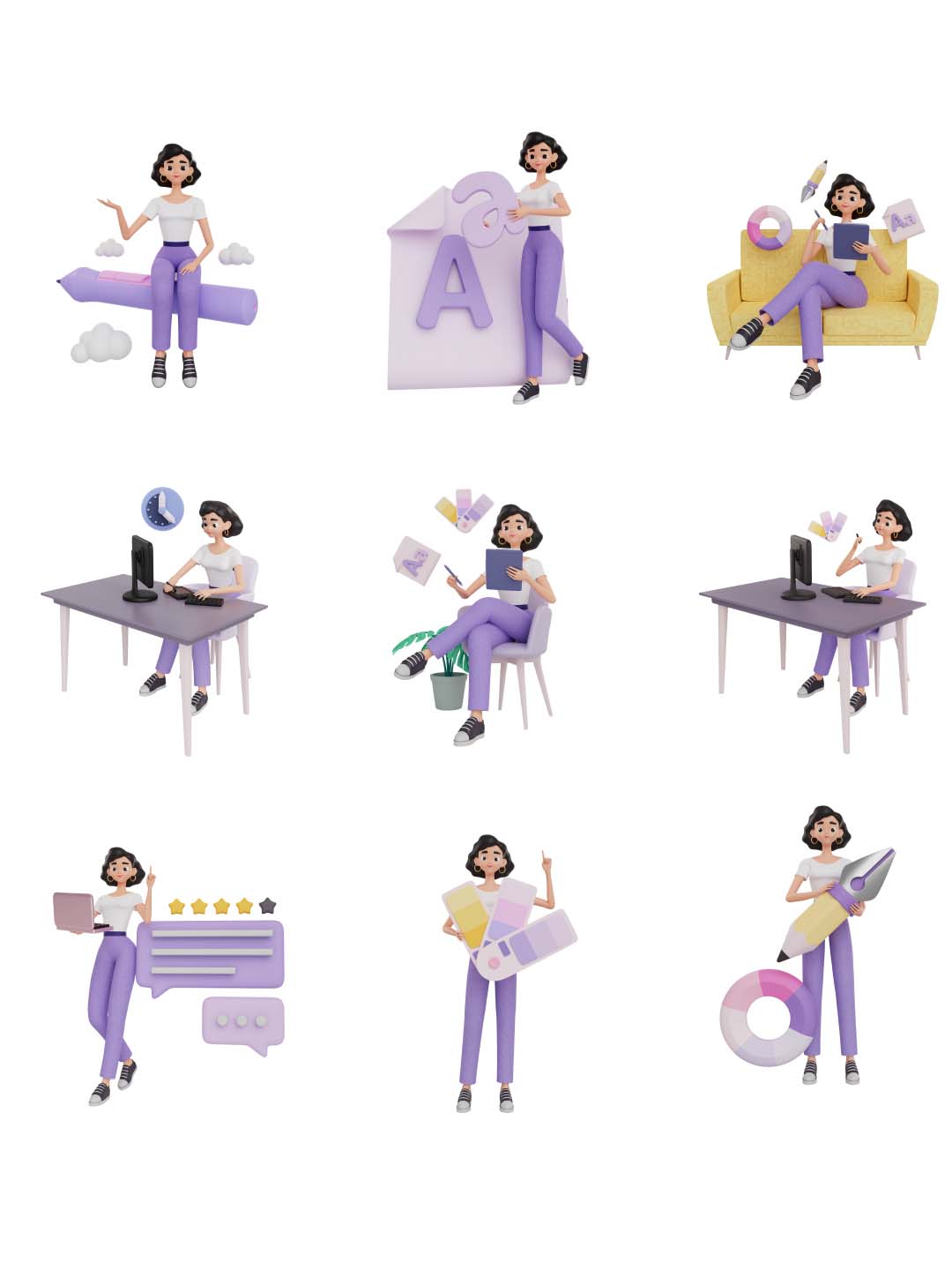一套3D人物角色源文件下载,3d人物角色插画运营设计Blender、Figma、PNG源文件