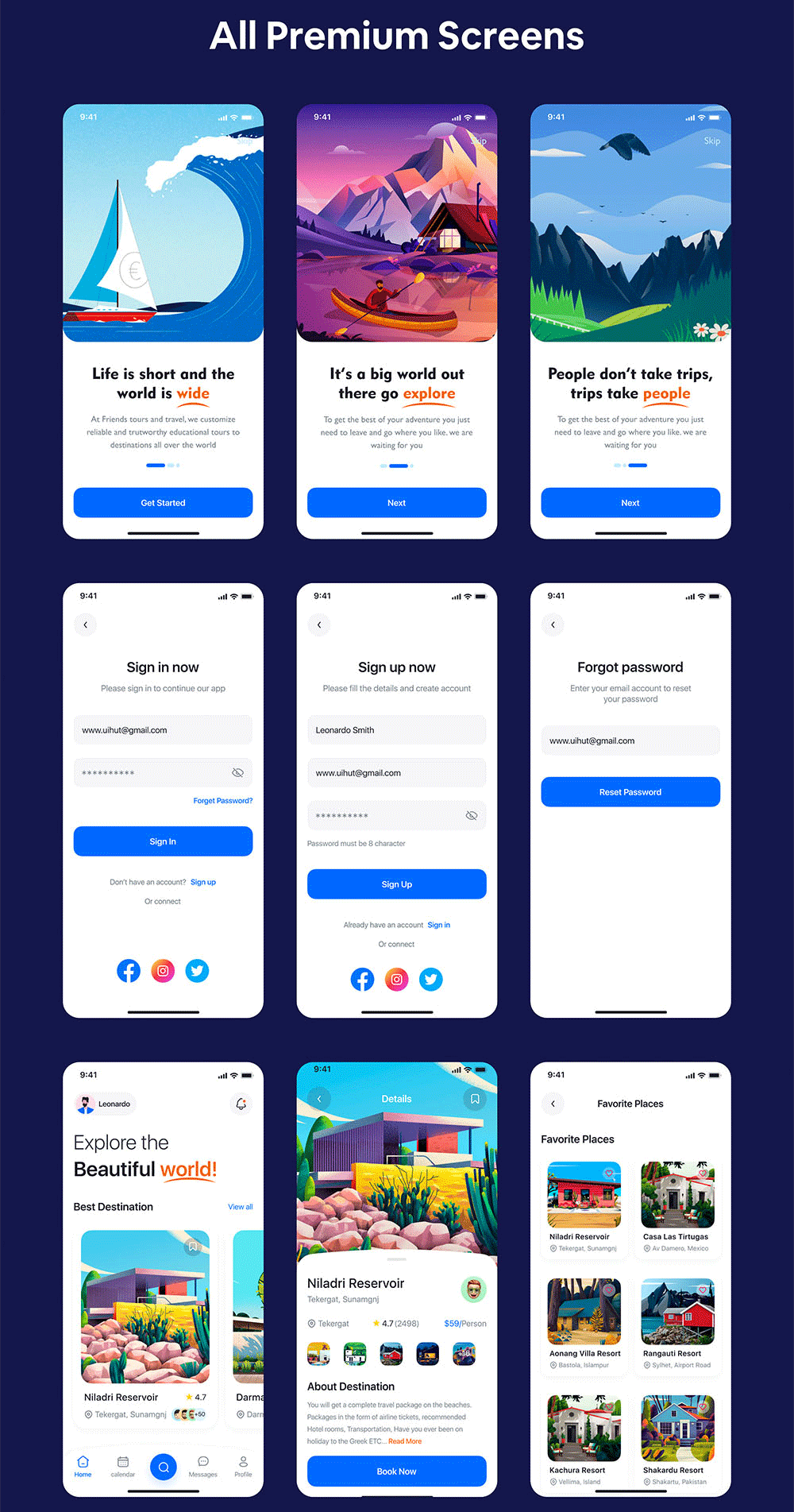 旅游探险插画风App设计figma,xd源文件