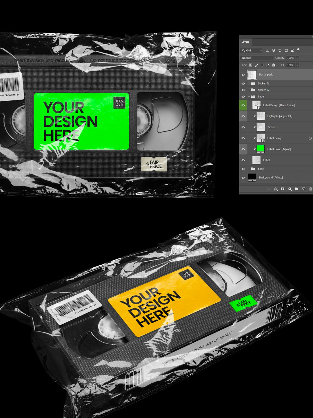 高级感塑料褶皱样机,复古风塑料褶皱视觉包装样机psd模板