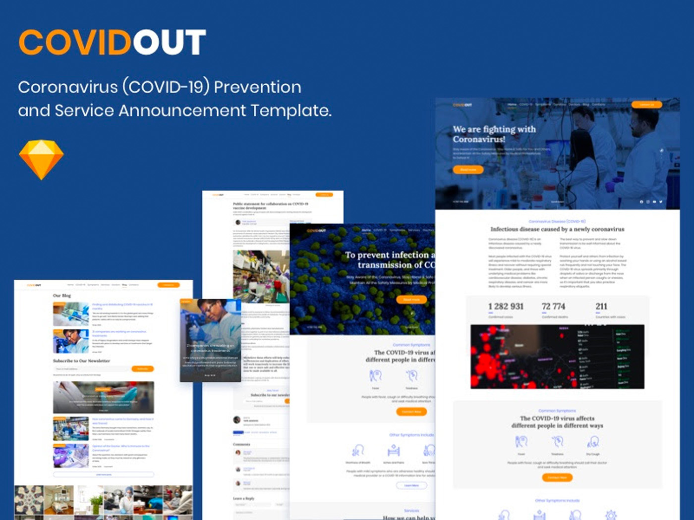 一个专业、时尚、简约的sketch模板,用于提供抗冠状病毒服务的诊所