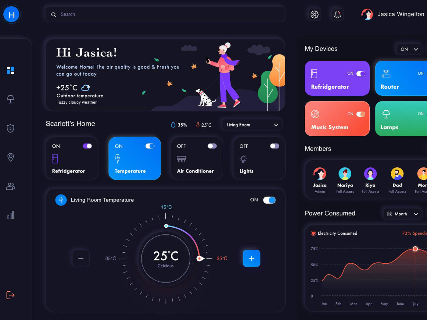 智能家居仪表盘设计概念,用户可以通过平板电脑或智能手机控制所有设备。
