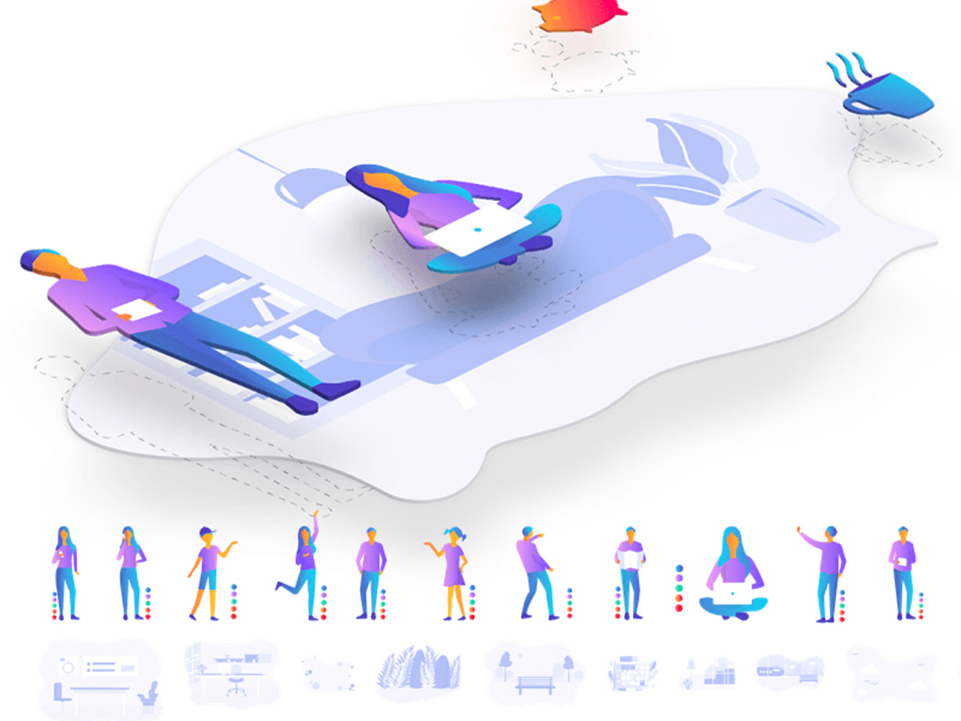 一组现代流行风适用于网页设计、移动app ui设计的适量插画设计ai源文件