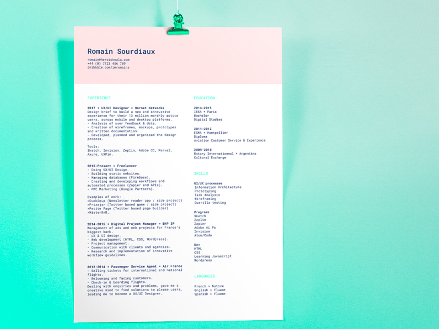 设计创意专业学生和应届毕业生加分简历DOCX.AI 和.PDF 格式