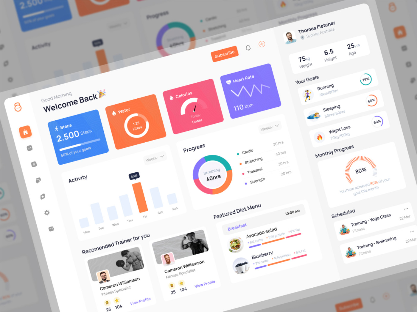 健身仪表盘,B端设计后台管理sketch,xd,figma