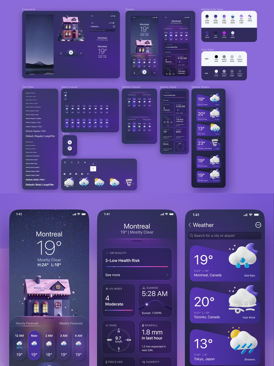 3页3D天气预报APP设计 | UI设计Figma源文件
