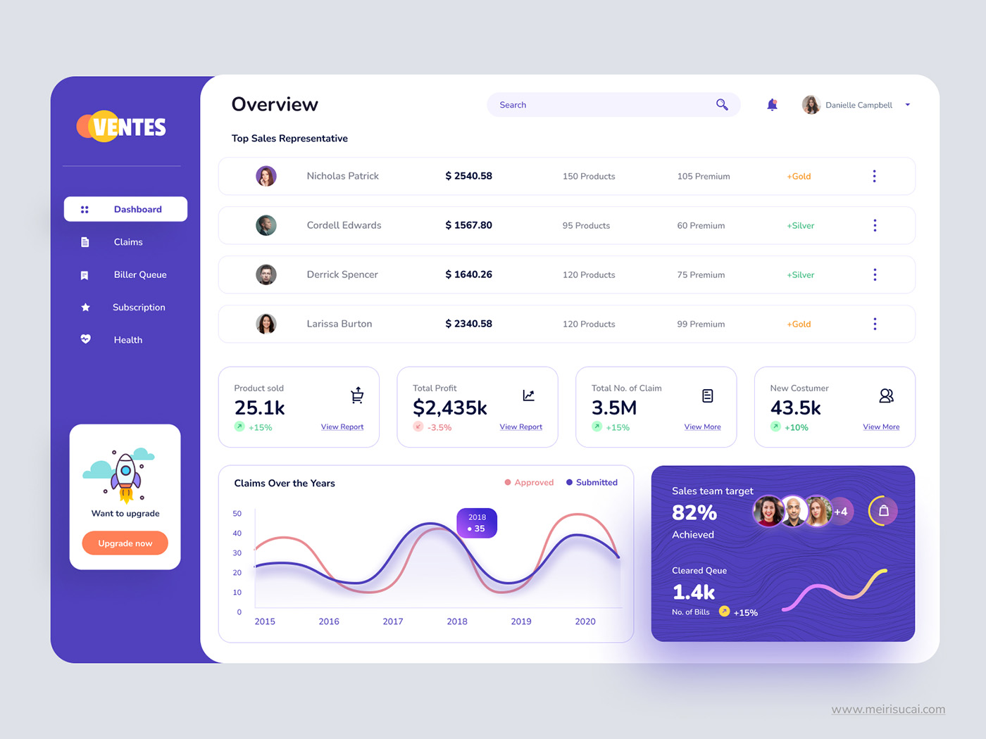 20页B端客户建康饮食管理后台仪表板UI设计figma源文件