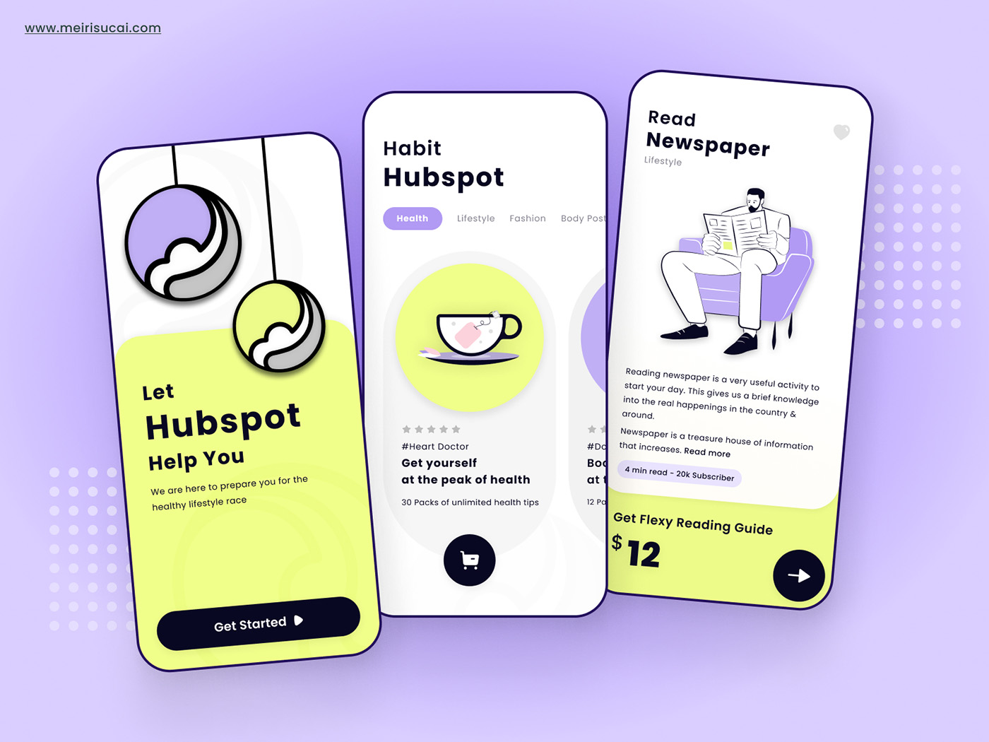 Hubspot -3页健康的生活方式启动页设计figma源文件