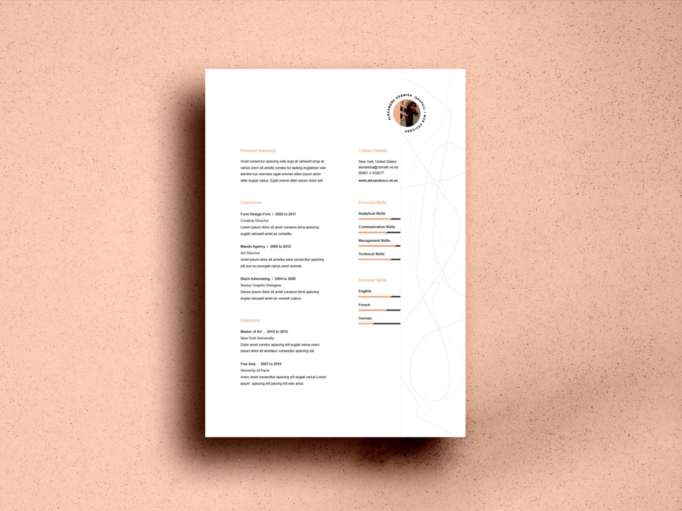 漂亮排版的个人设计师简历矢量ai,eps格式源文件