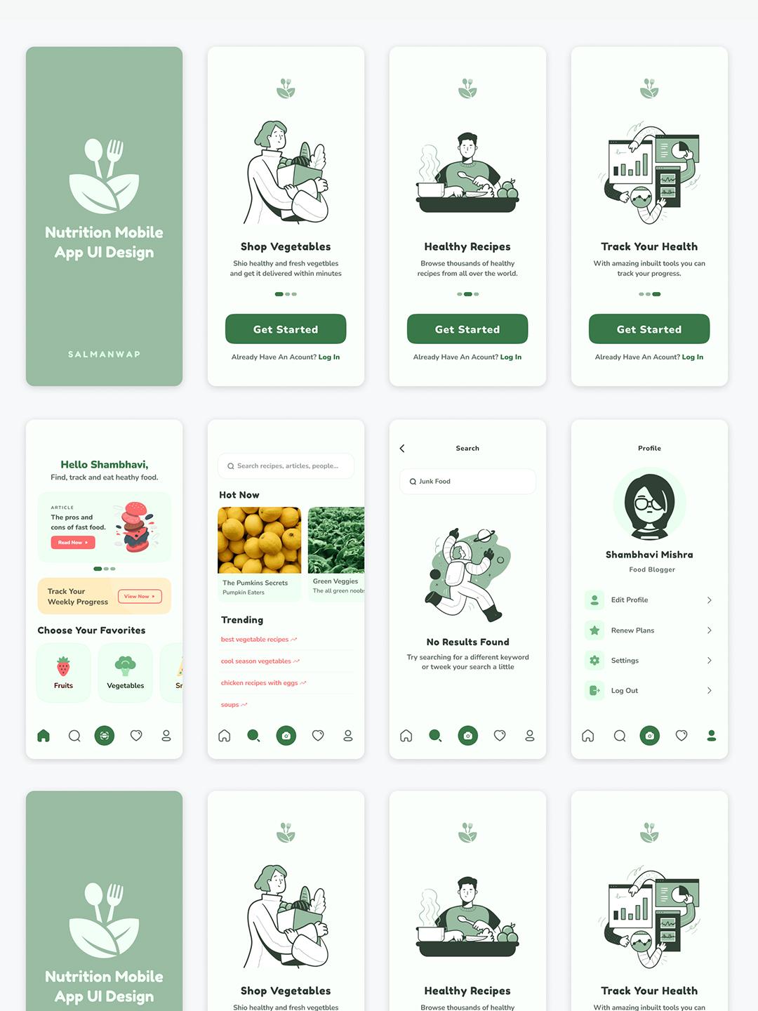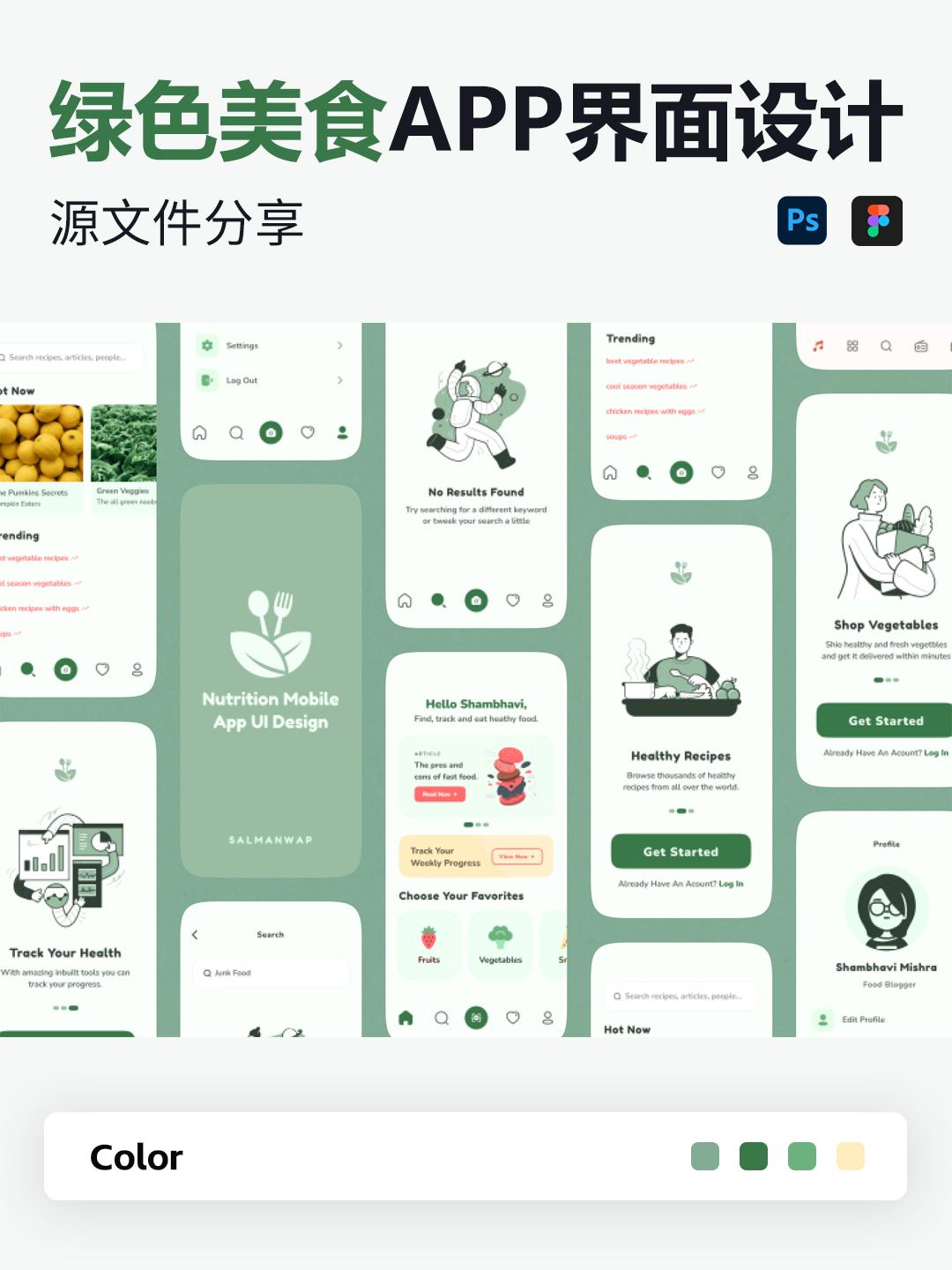 8页绿色美食APP界面设计Figma、PSD源文件
