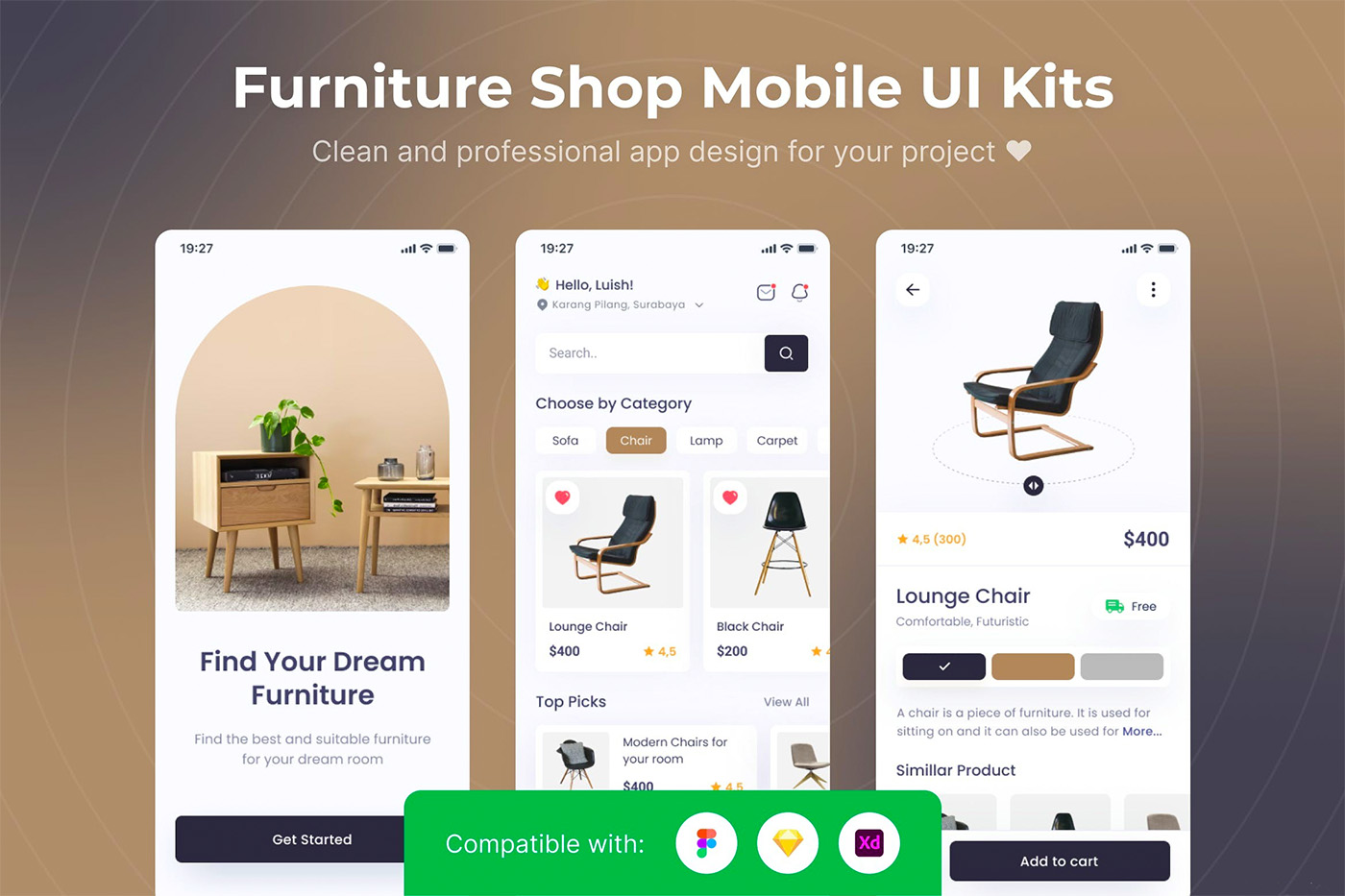 高保真家具电商app ui设计资源sketch,xd,figma格式