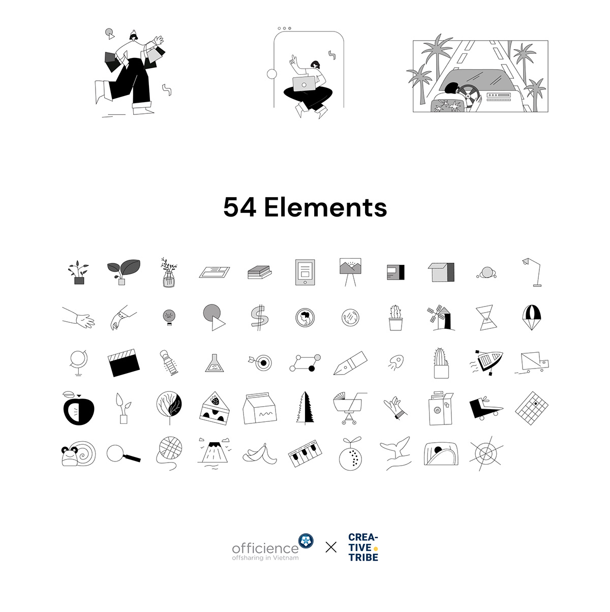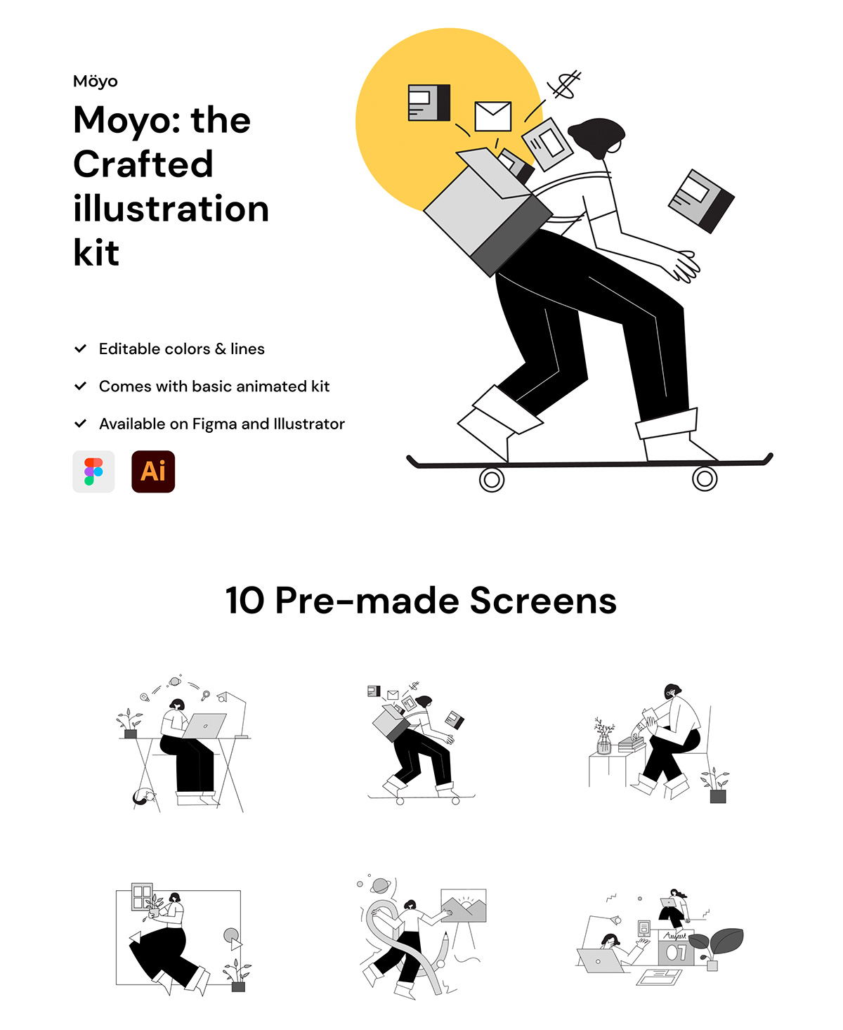 一套矢量线条流行风运营插画ai源文件下载,UI插画资源下载figma、xd源文件