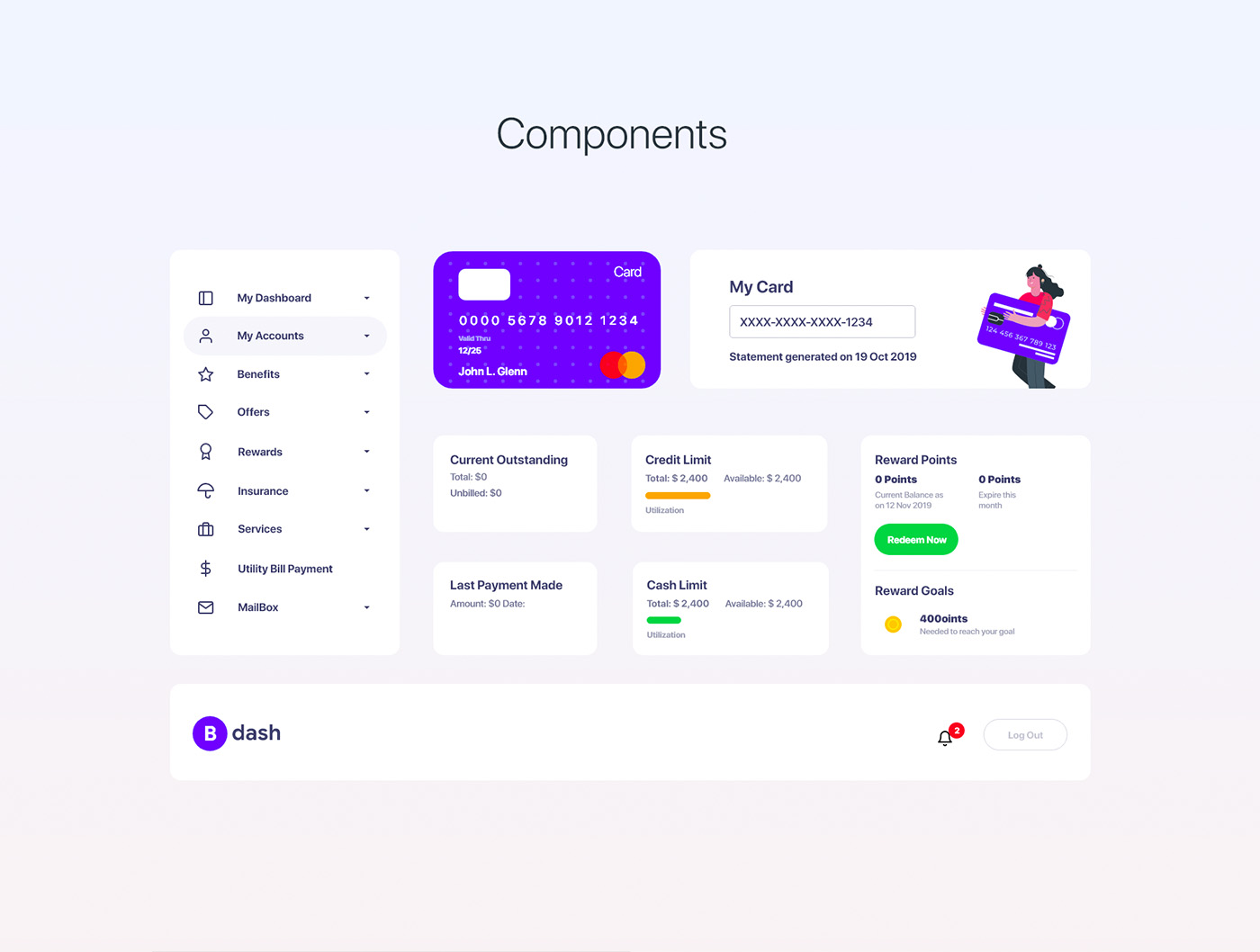 B端银行后台管理仪表板用户界面xd源文件
