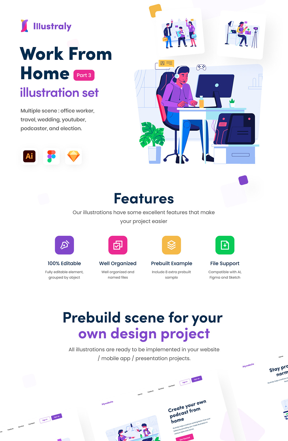 8个在家工作办公插画集Sketch、Figma 和 Adobe Illustrator格式