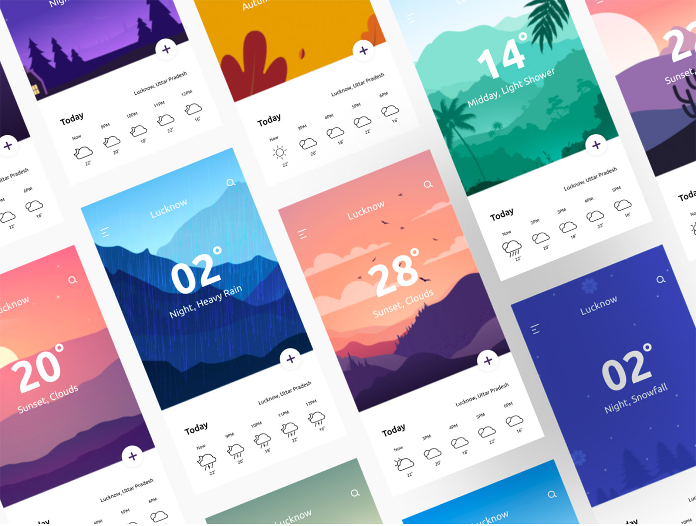 11个天气应用卡片插画设计figma,psd格式