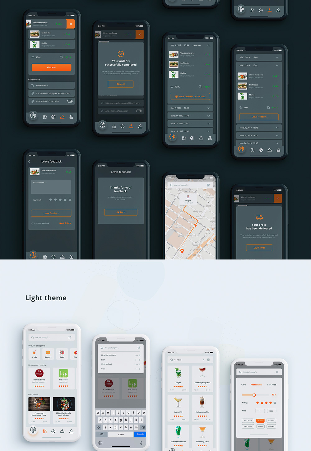 明暗共110页美食外卖、送餐点餐APP UI界面figma,sketch,xd,studio格式