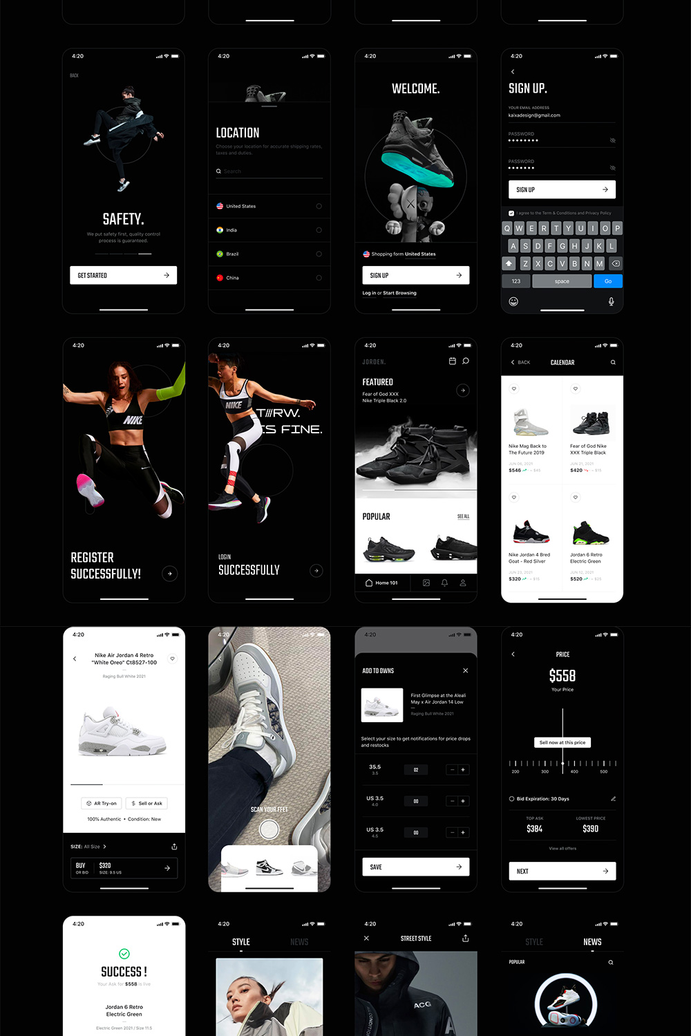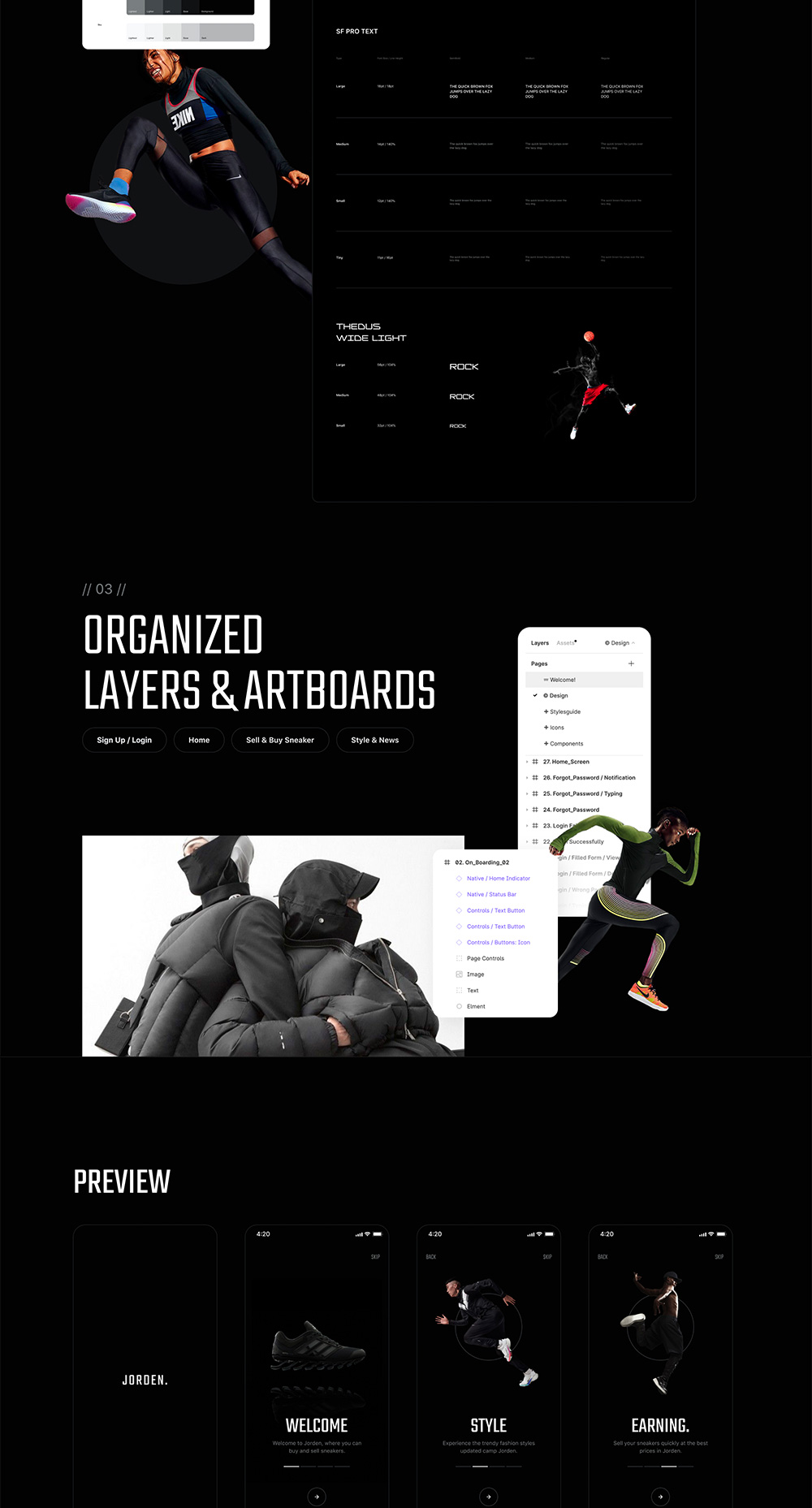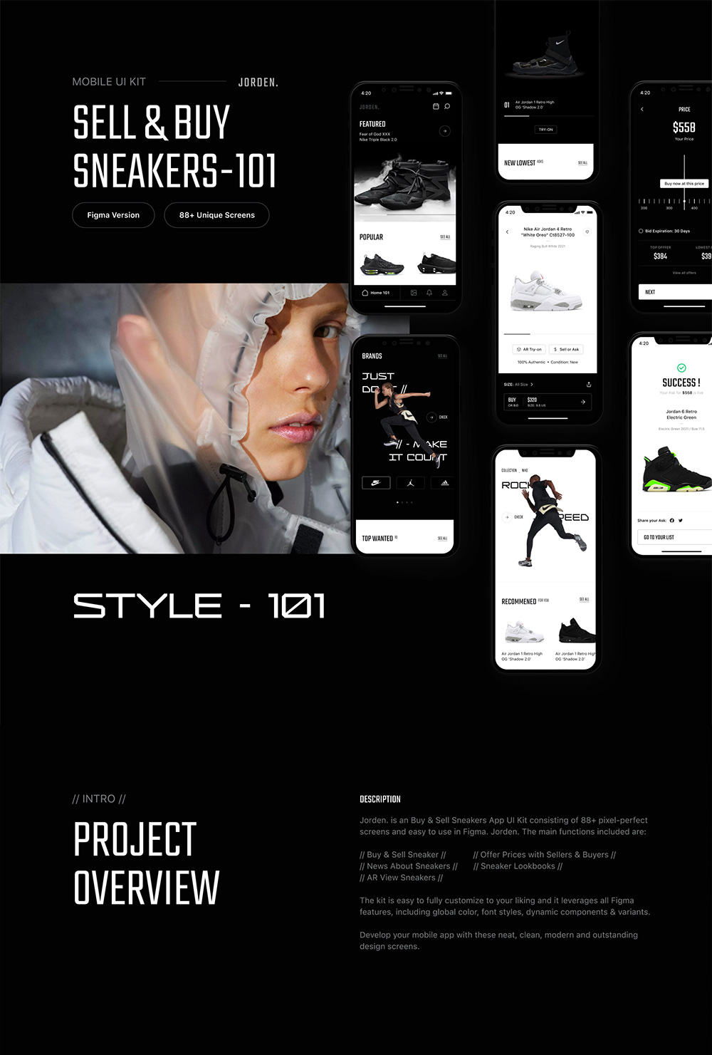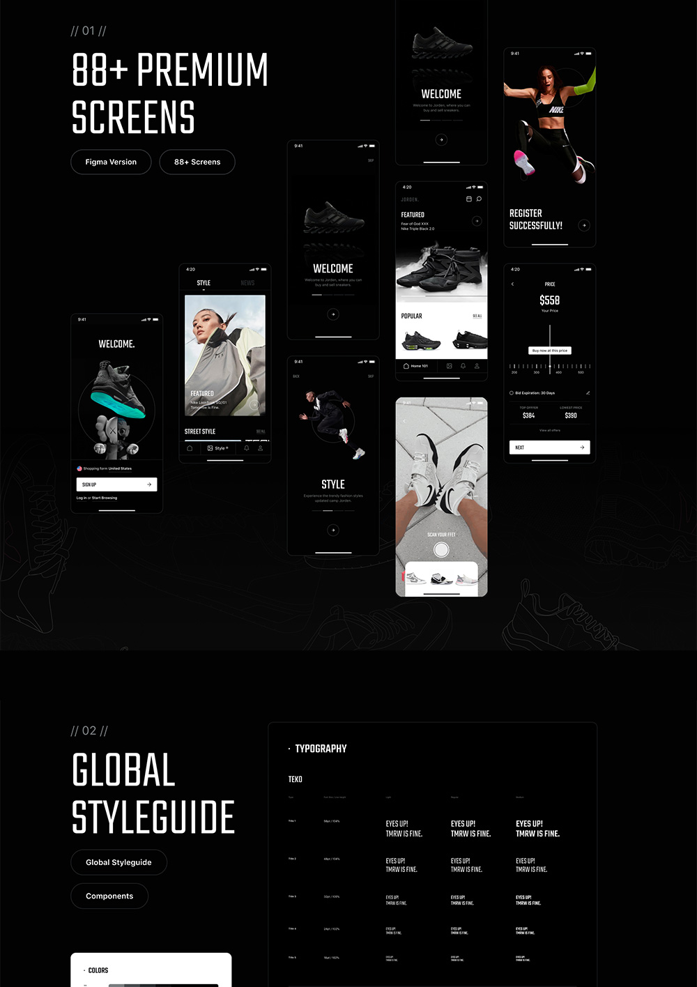 88页酷黑运动鞋电商 UI 套件figma源文件