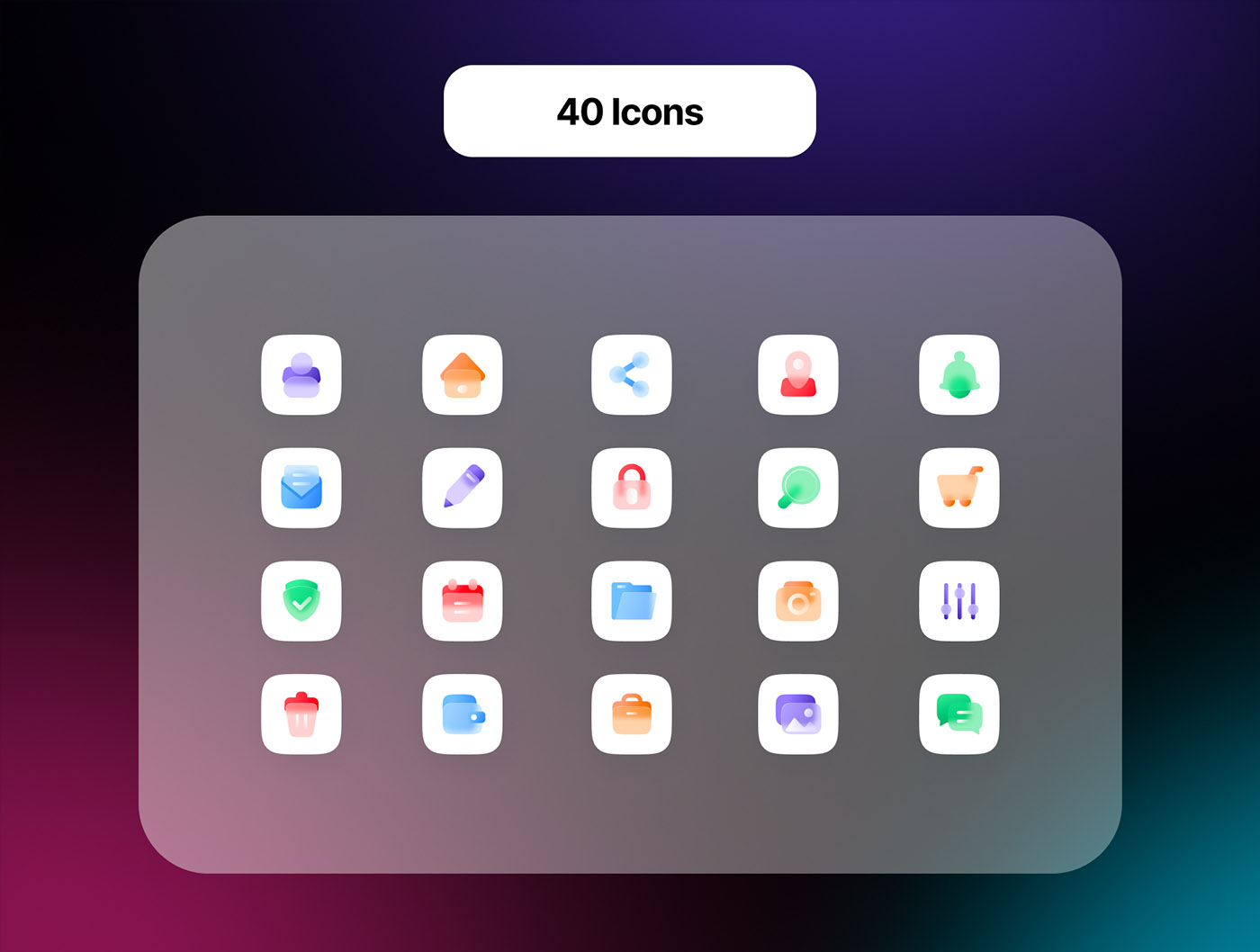 40个玻璃质感icon图标figma源文件