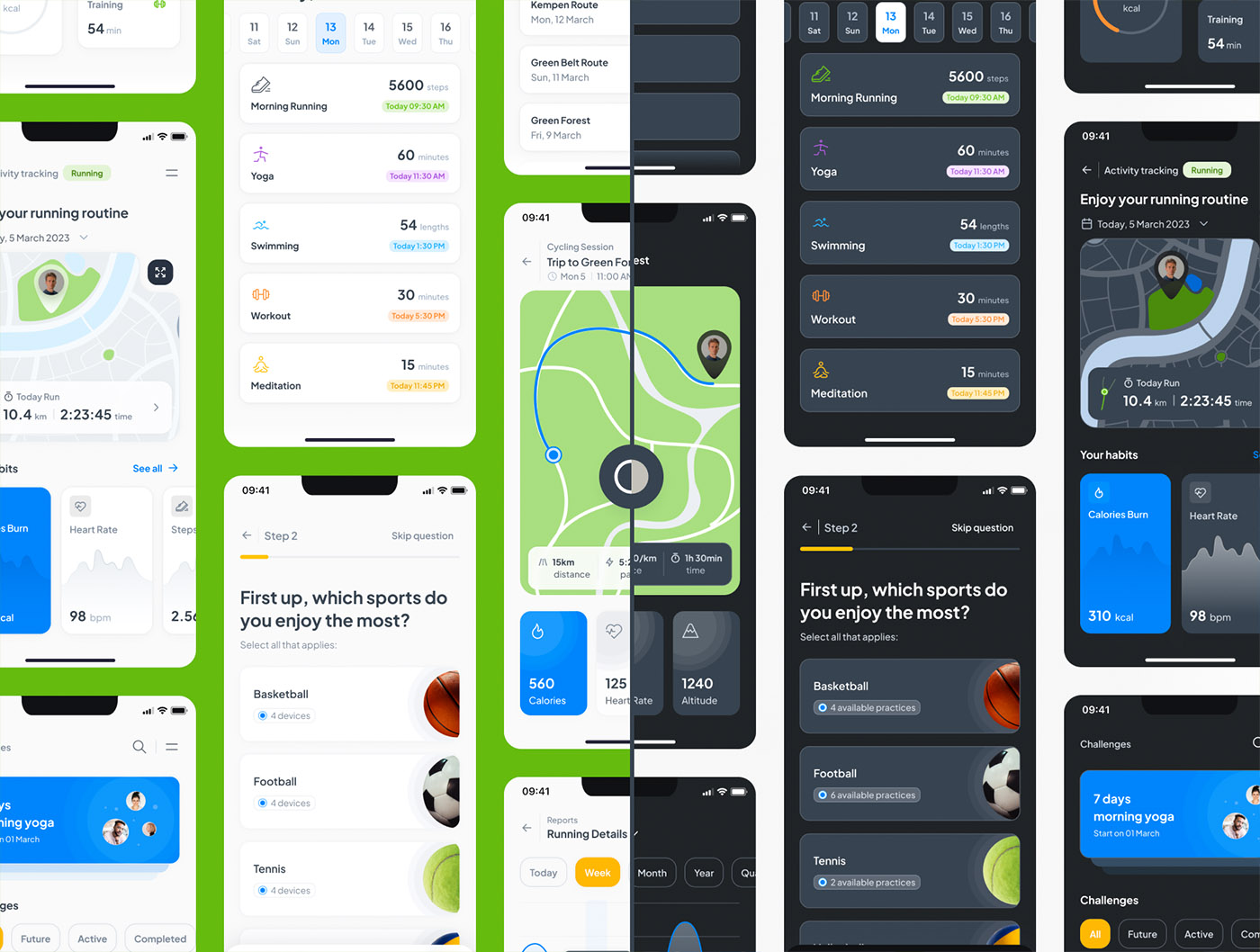 50页明暗双色运动app,小程序UI界面设计figma源文件