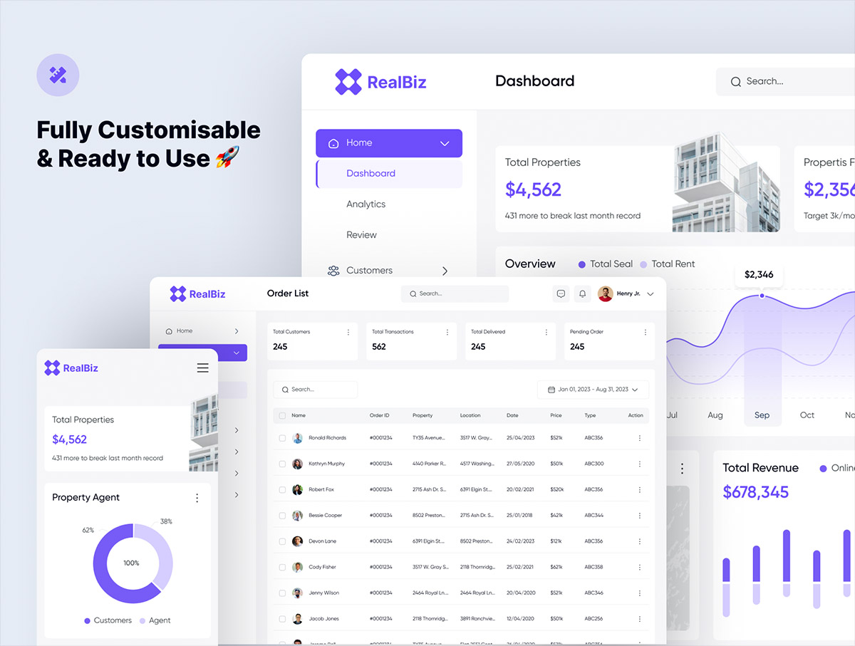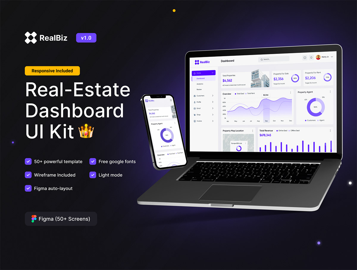 50页B端房地产后台管理仪表板 UI 套件figma源文件