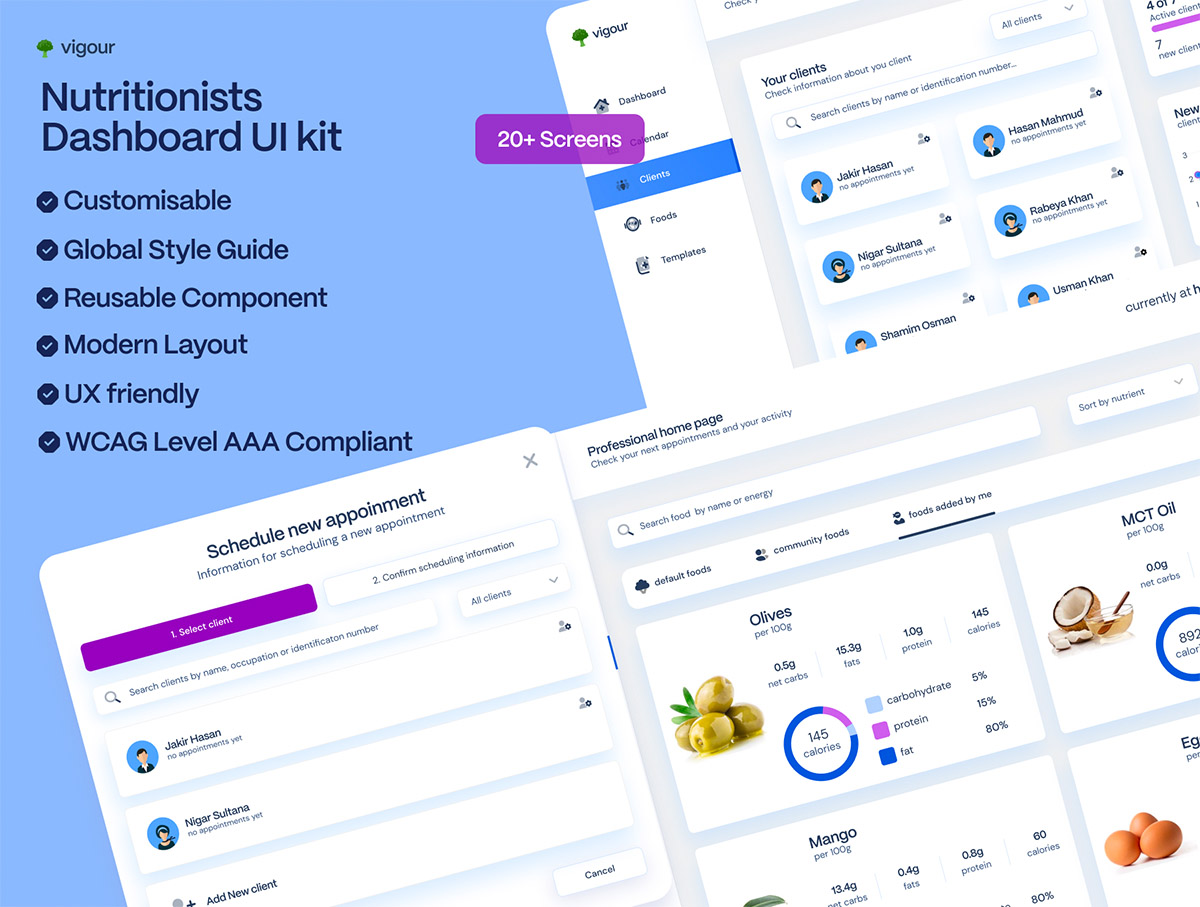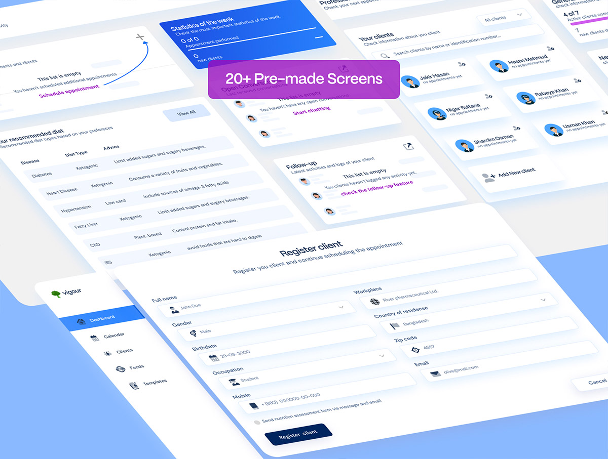 20页B端客户建康饮食管理后台仪表板UI设计figma源文件