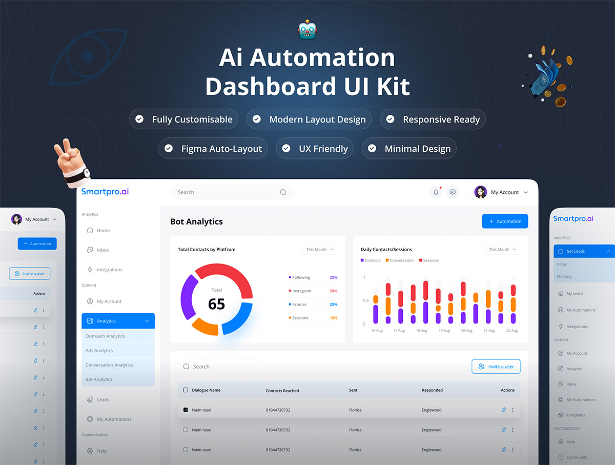 30页响应式 B端 AI 自动化仪表板后台 UI 套件figma源文件