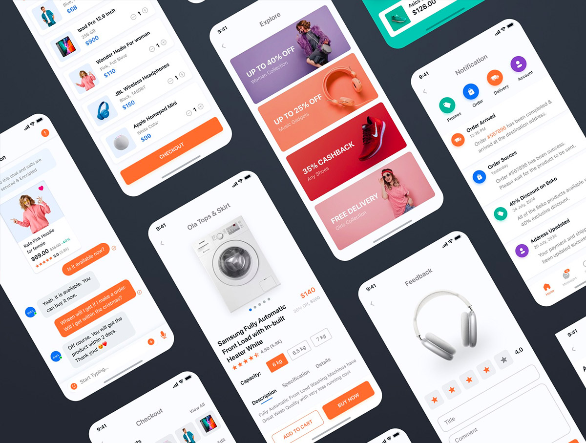 电商购物App应用 UI 套件sketch,xd,fig,studio
