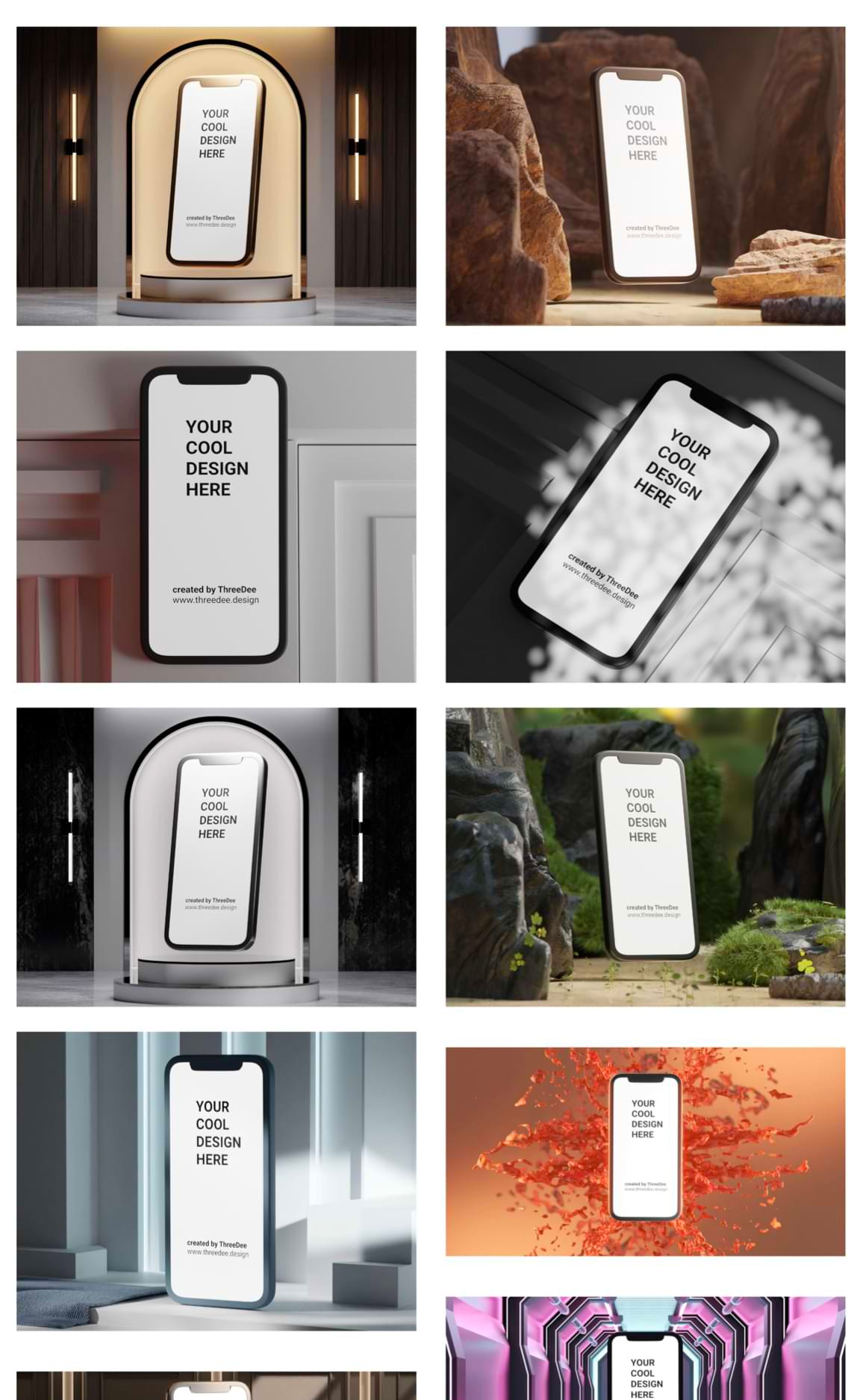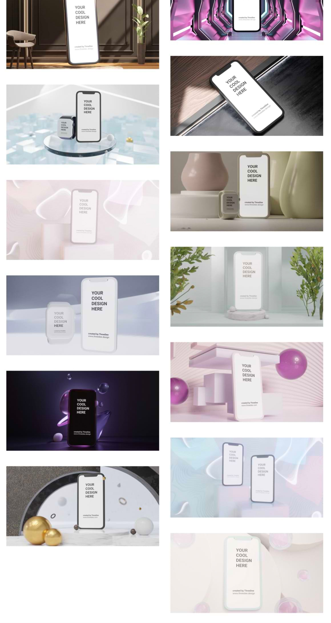 12个机型样式,适用于 iPhone 和 Android,A4 格式模板,完美展示真实设备尺寸。