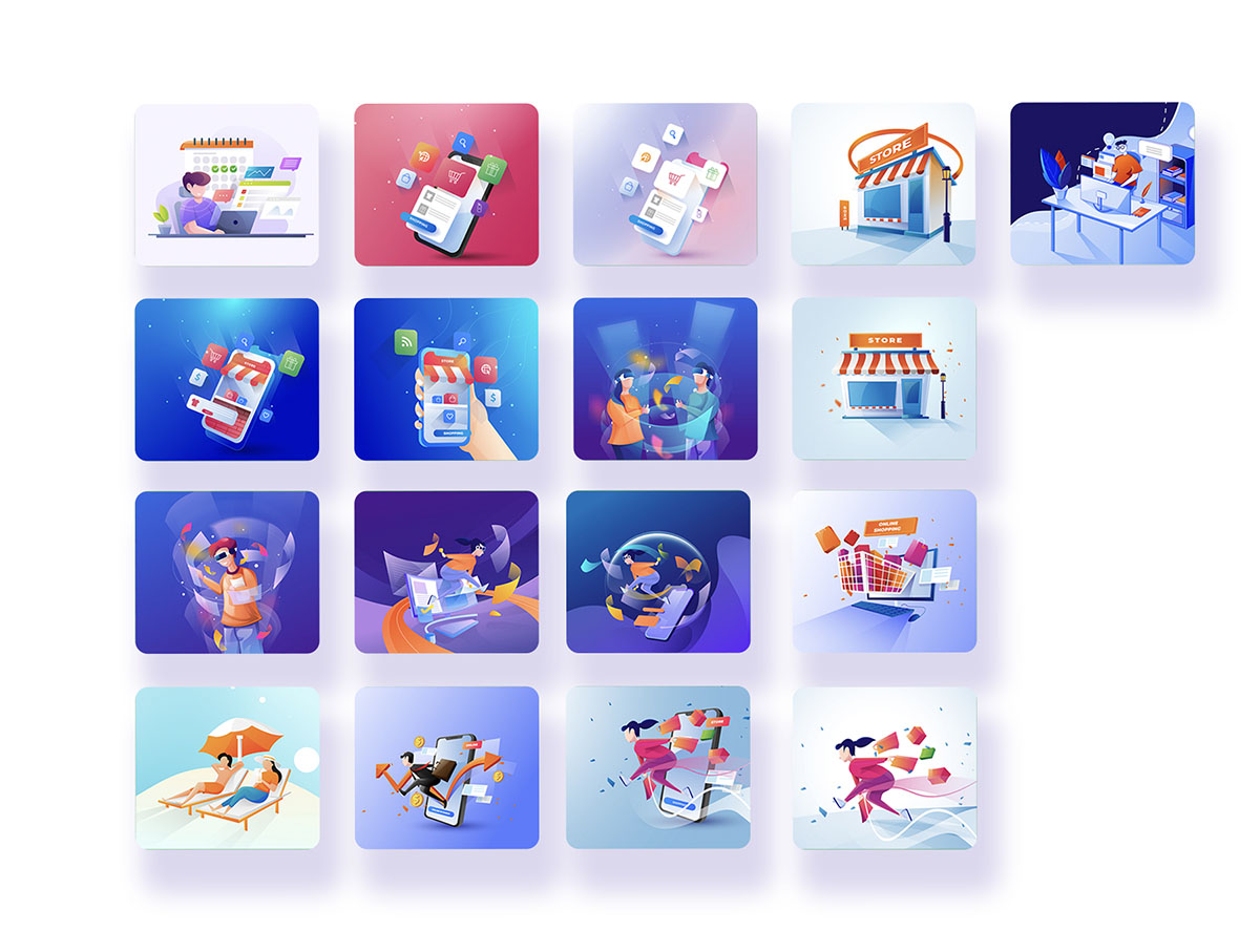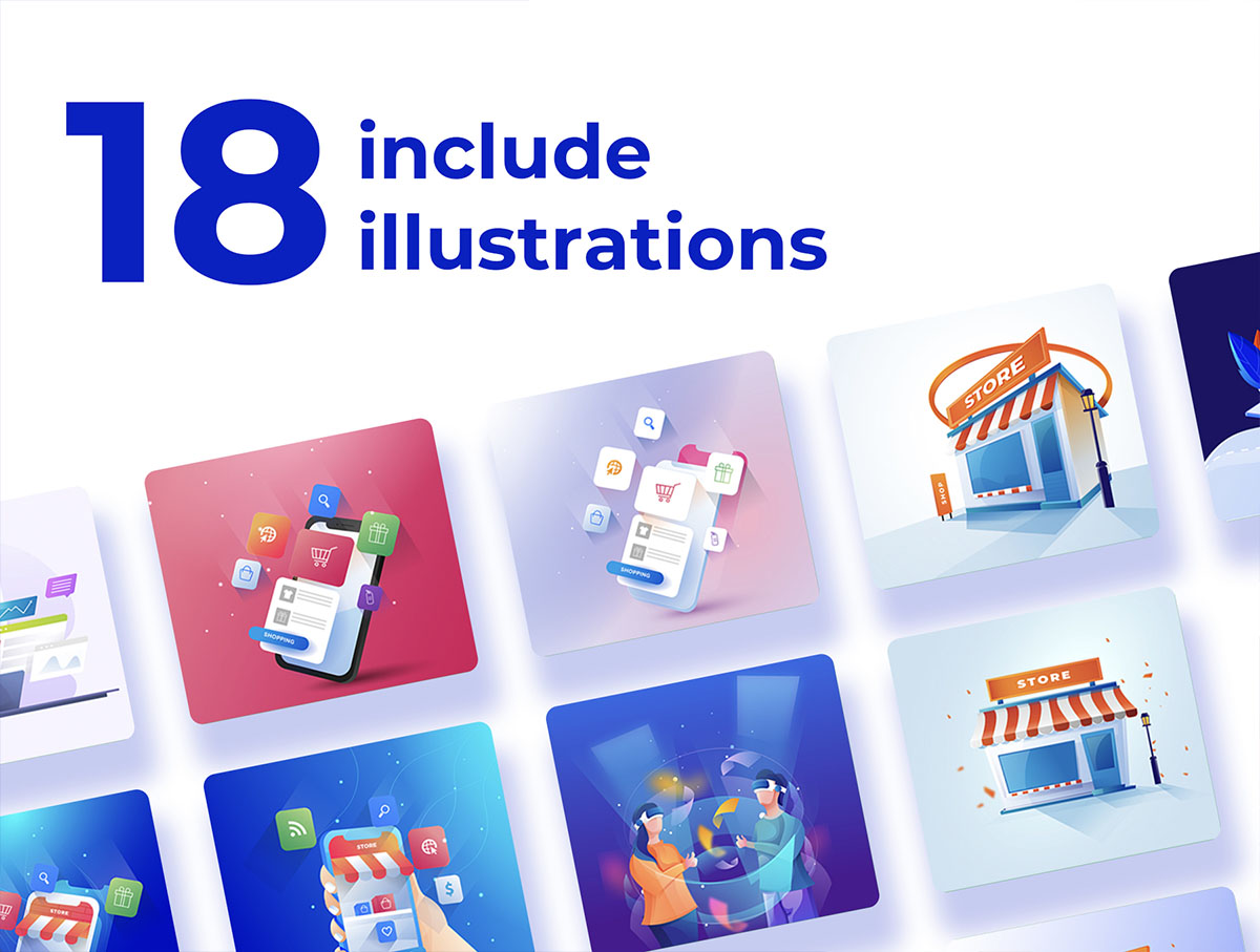 18个画板插画,插图矢量Ai 和 EPS格式