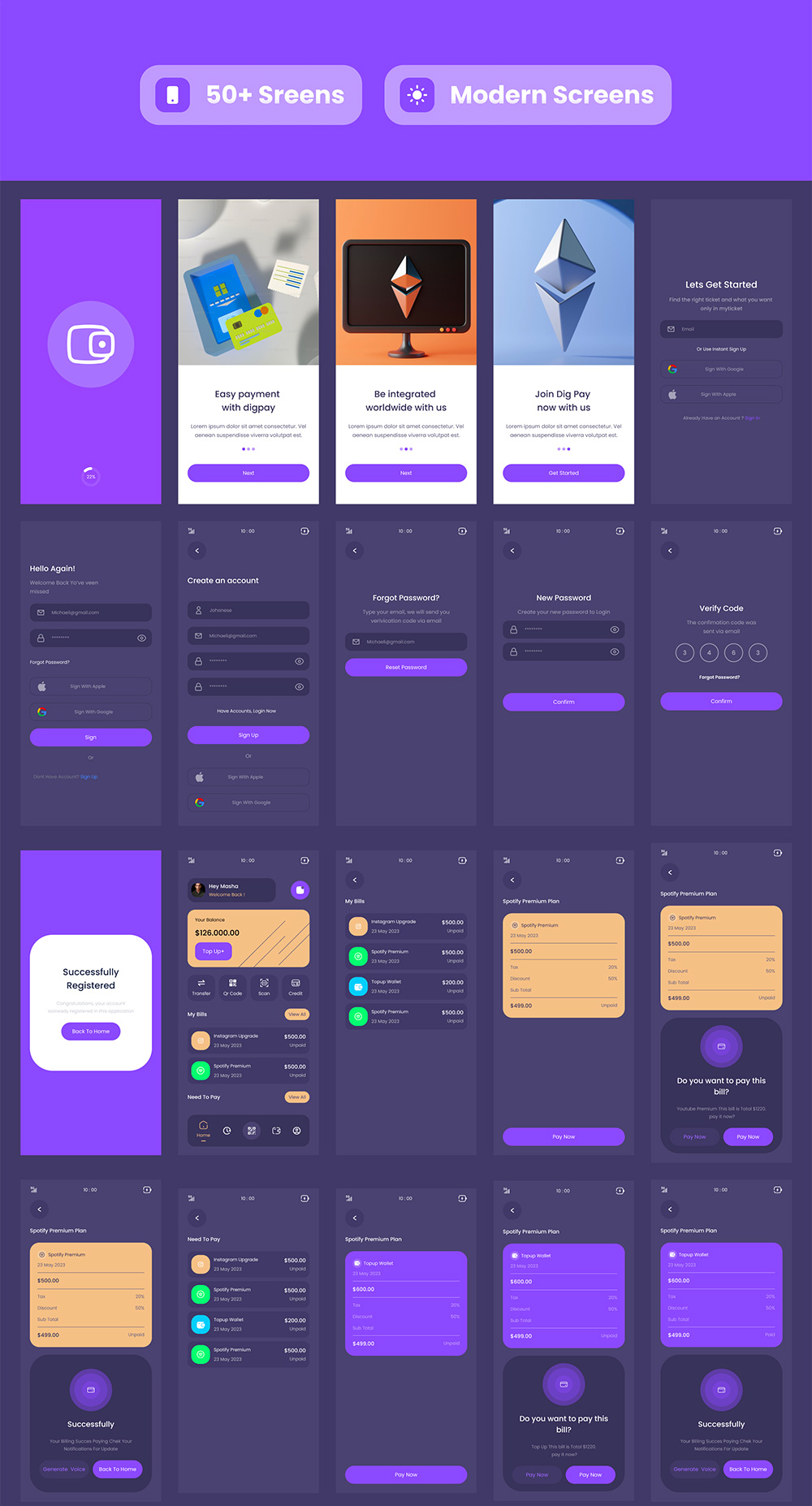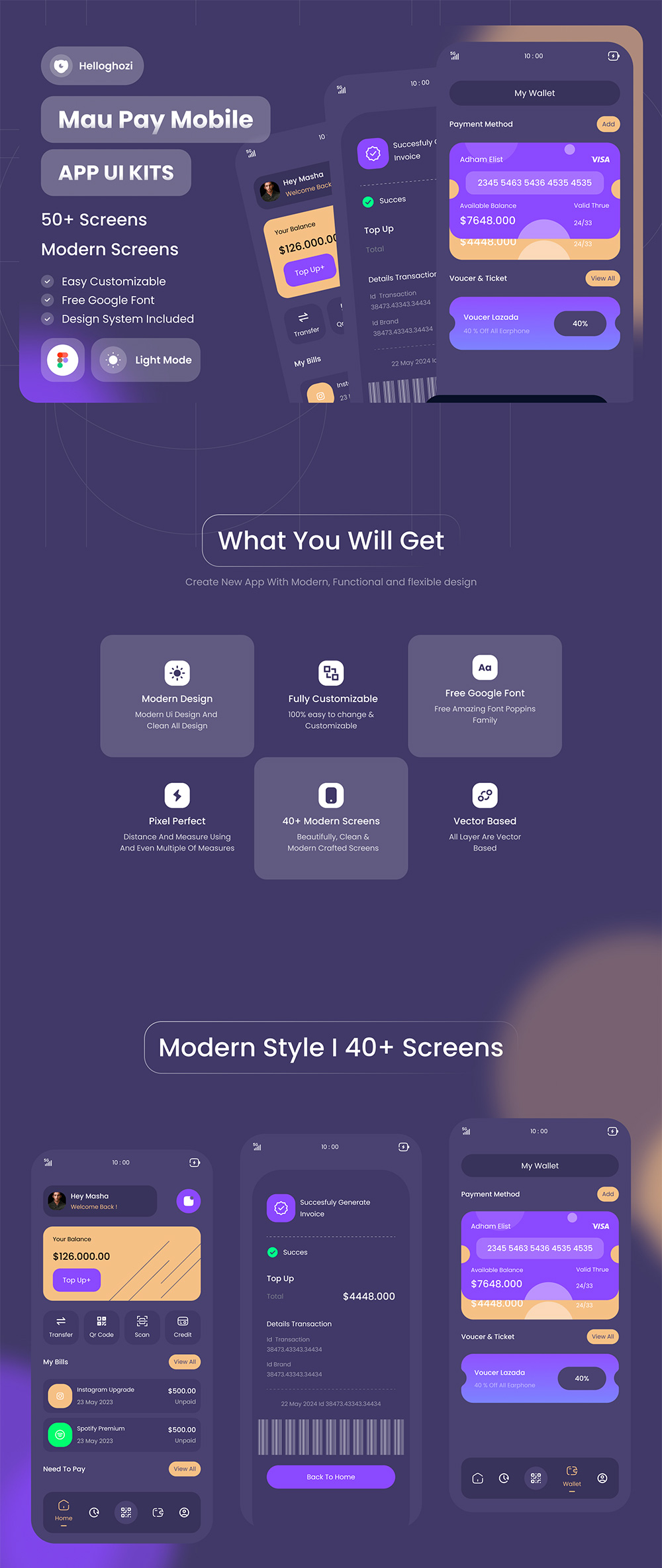 50页数字支付与钱包移动应用程序 Ui 套件模板figma格式