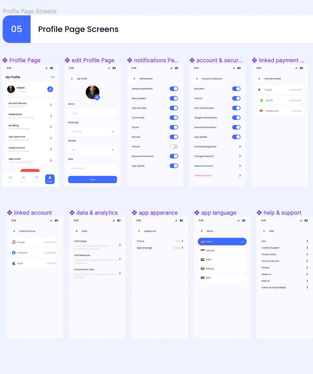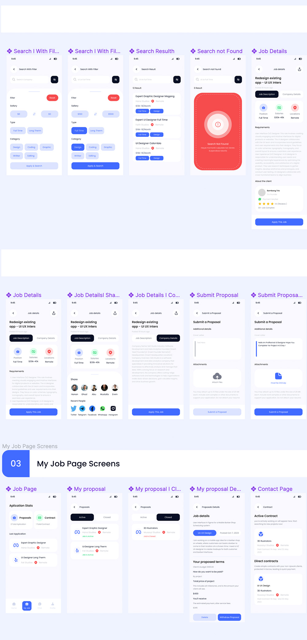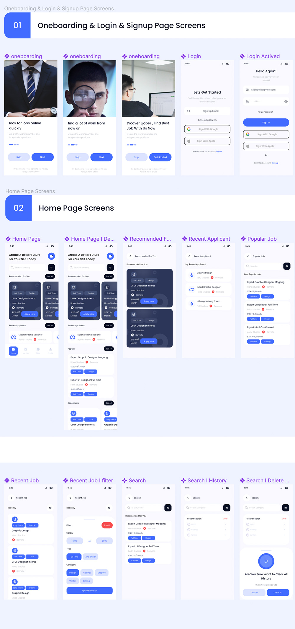 50页简约时尚设计求职者移动端应用程序UI工具包figma源文件