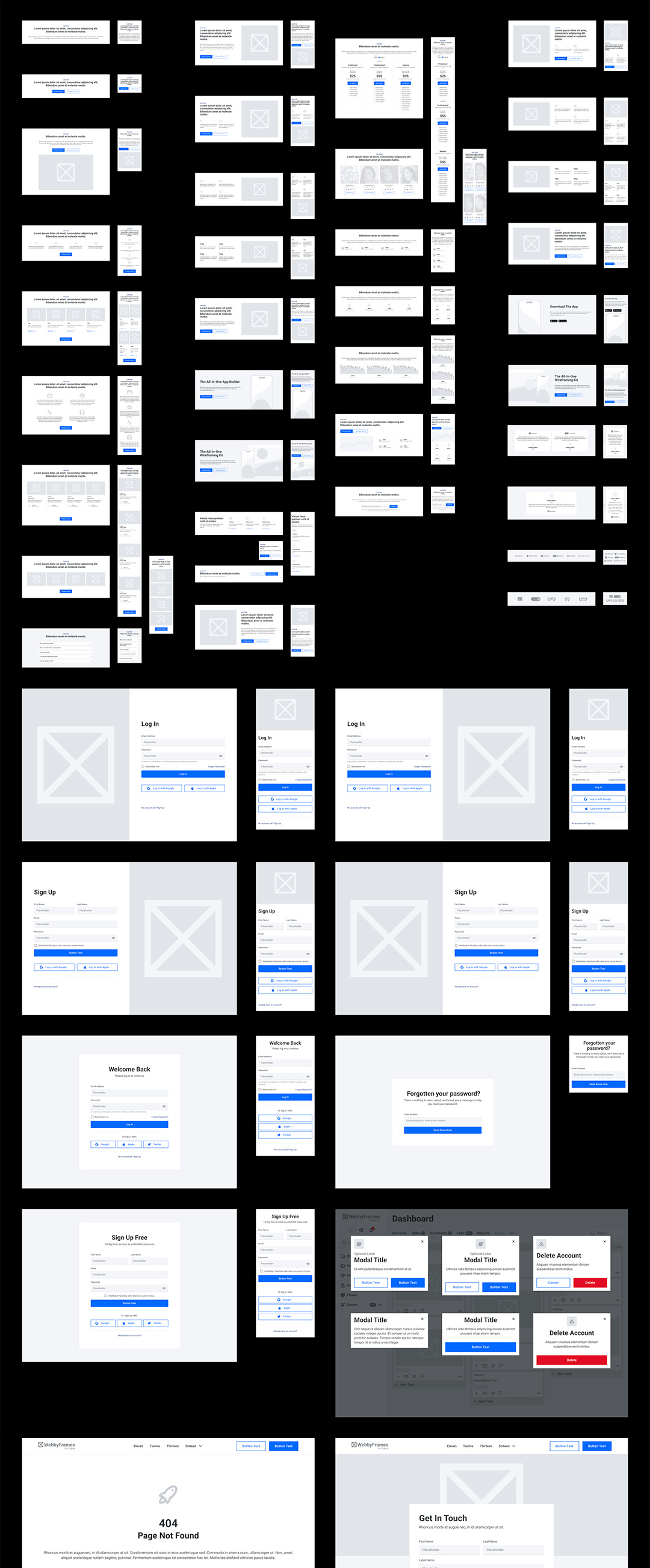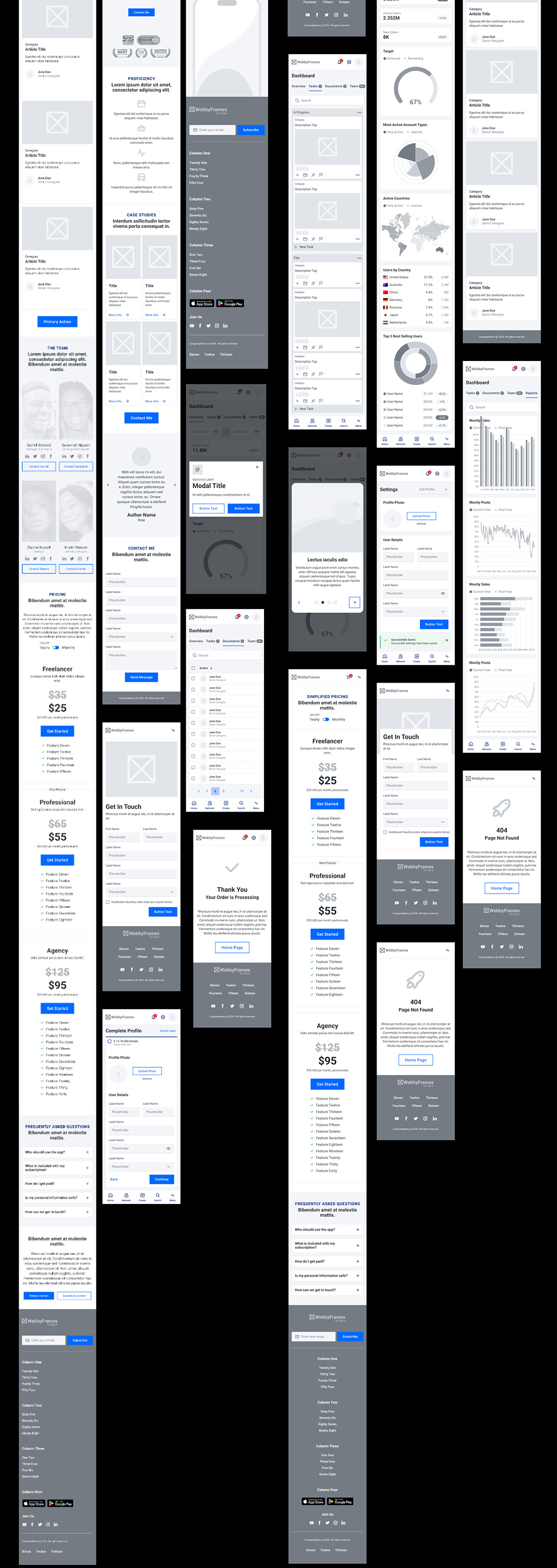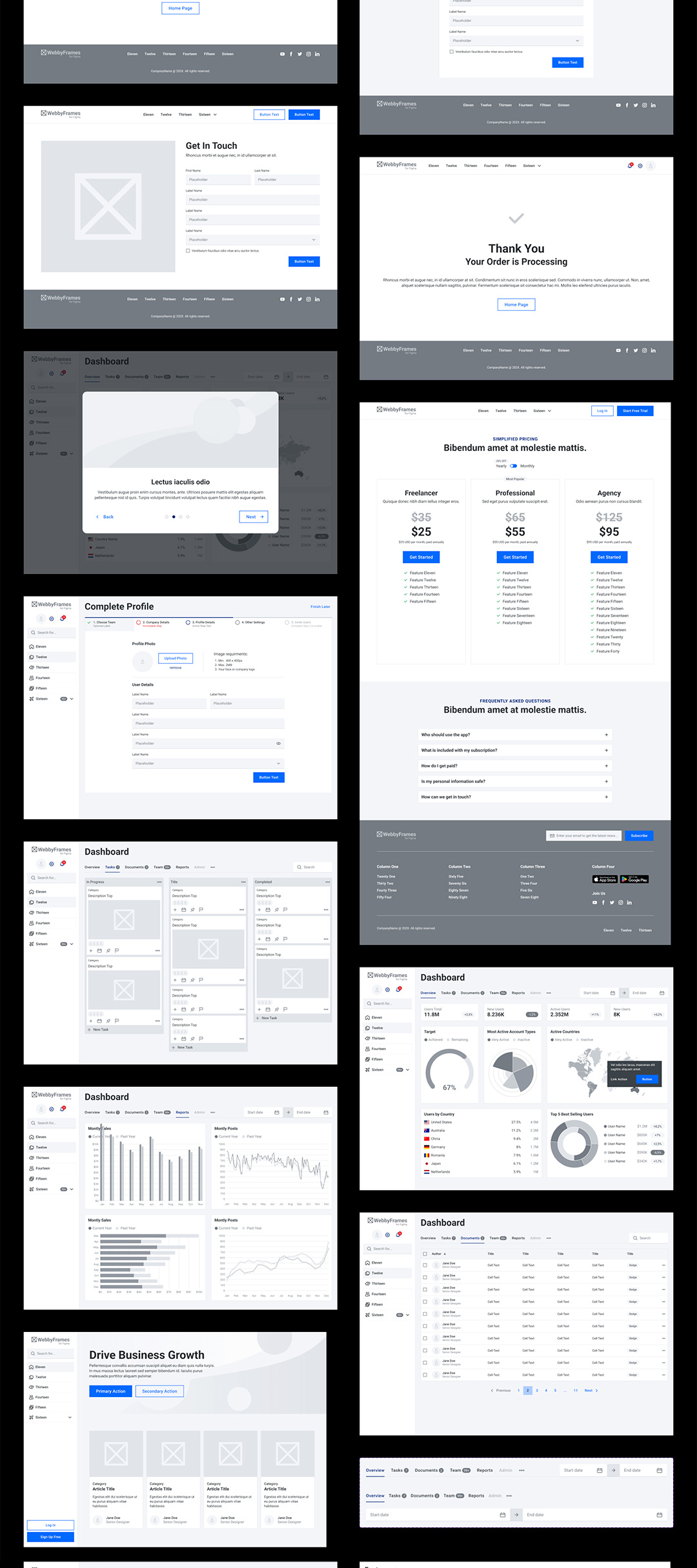 16页响应式网站,16页网站B端仪表盘,14页登陆页原型线框图figma源文件