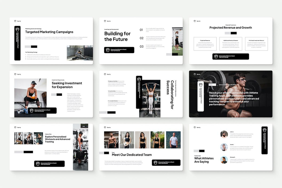 20页简约轻量的运动健身行业提案、路演、宣传PPT模板(没有展示图)