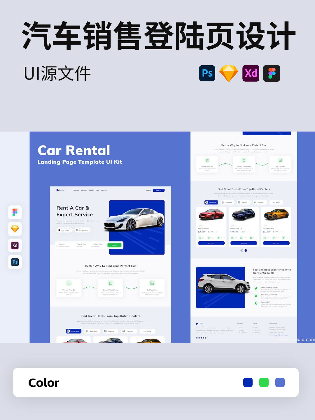 汽车销售、租赁平台网站主页设计FIG,PSD,SKETCH,XD格式