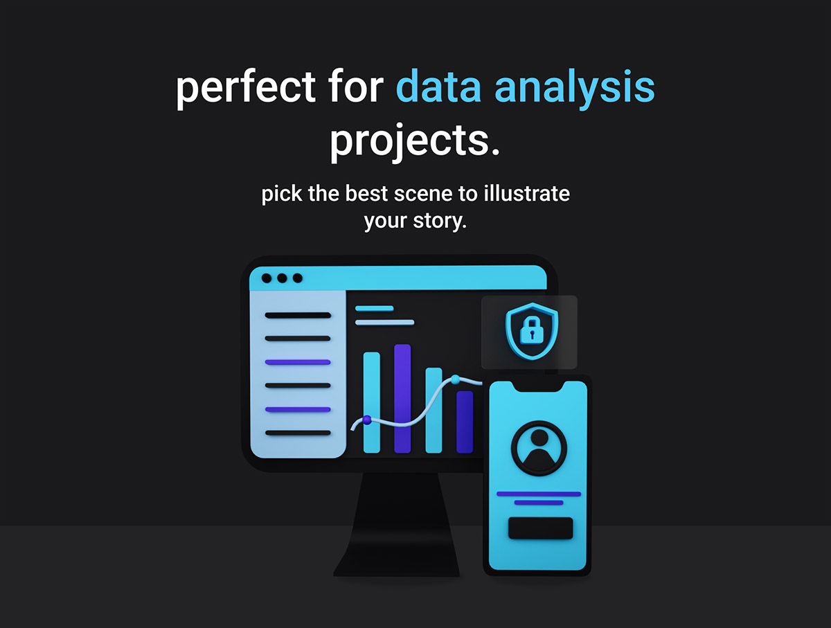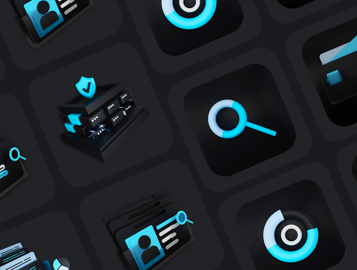 23个数据库和分析3d插图和图标png,Blender格式