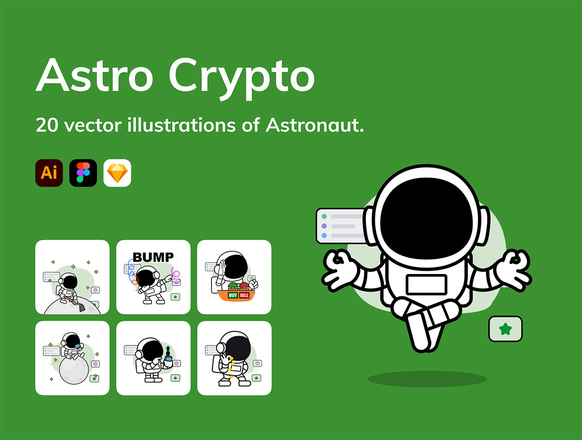 20个矢量宇航员插图sketch, SVG, figma, PDF格式