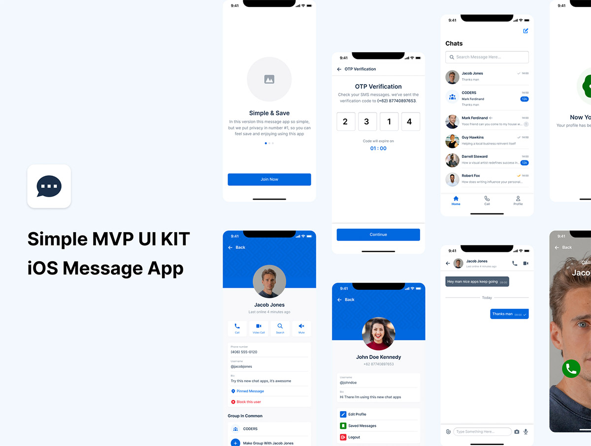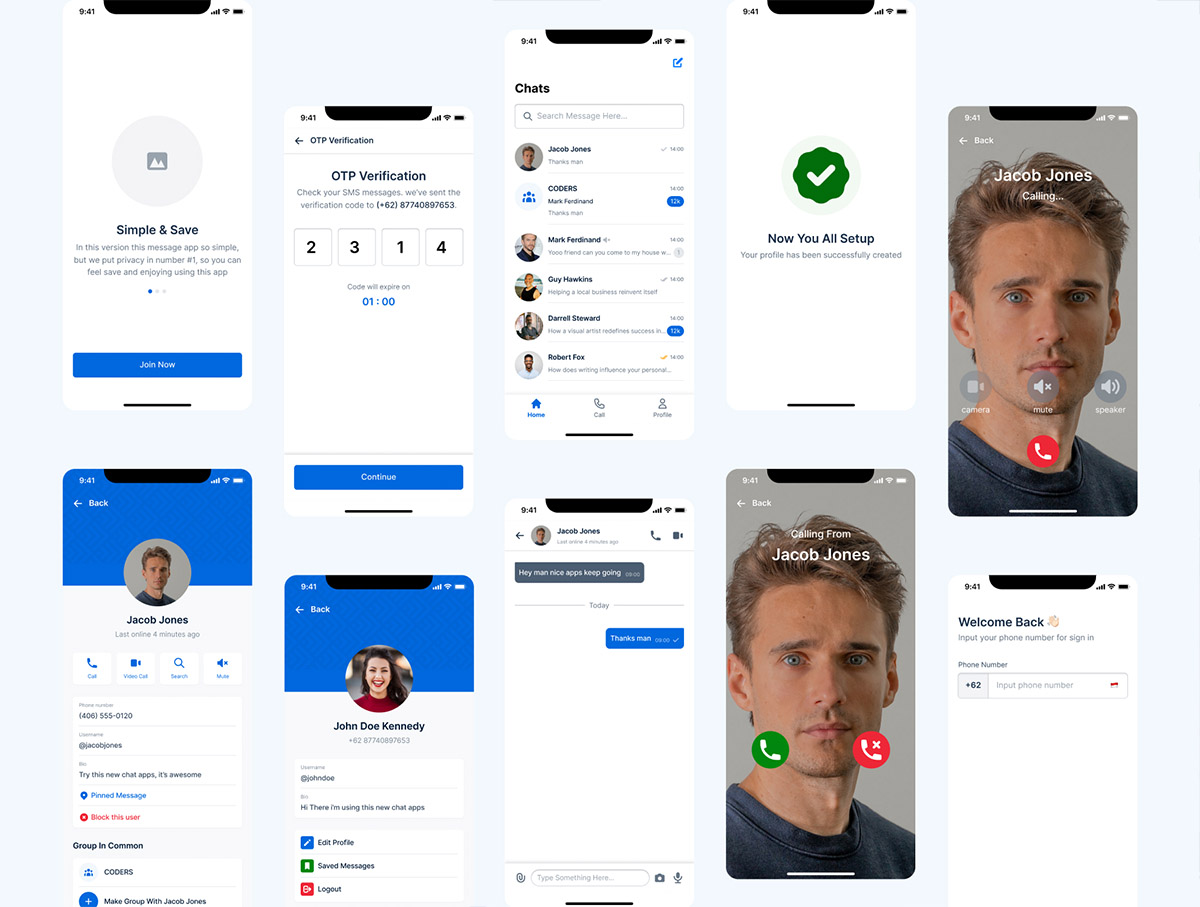 50页聊天通讯消息应用程序app设计figma源文件